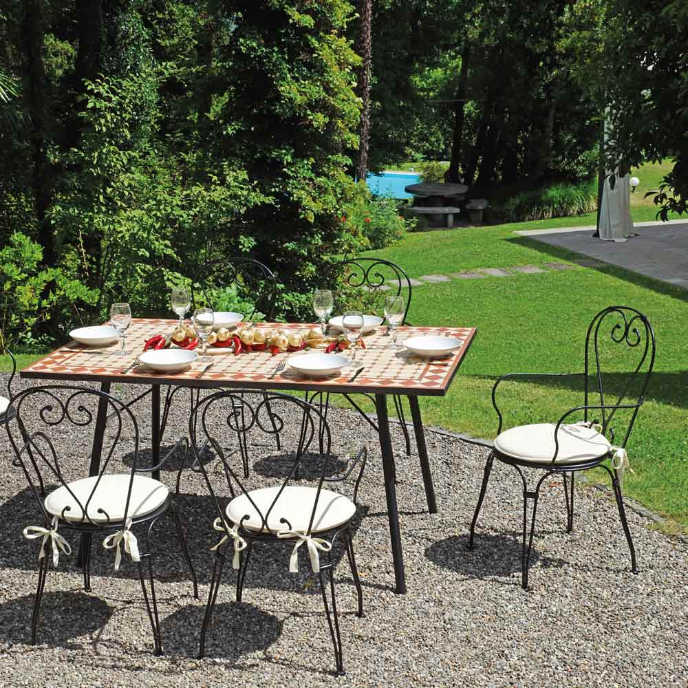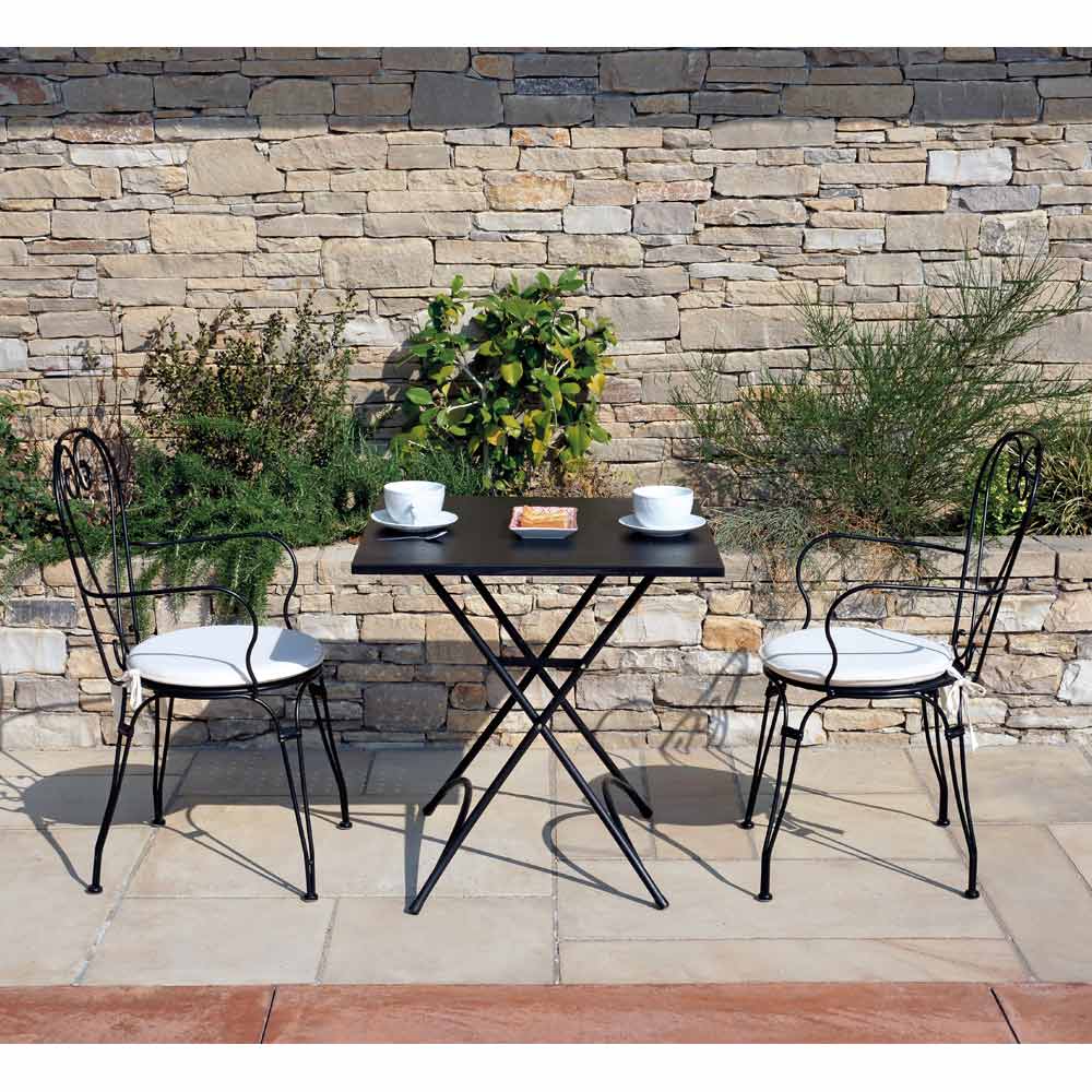 Zahradní židle se sedákem a konstrukcí z černého železa s moderním designem
