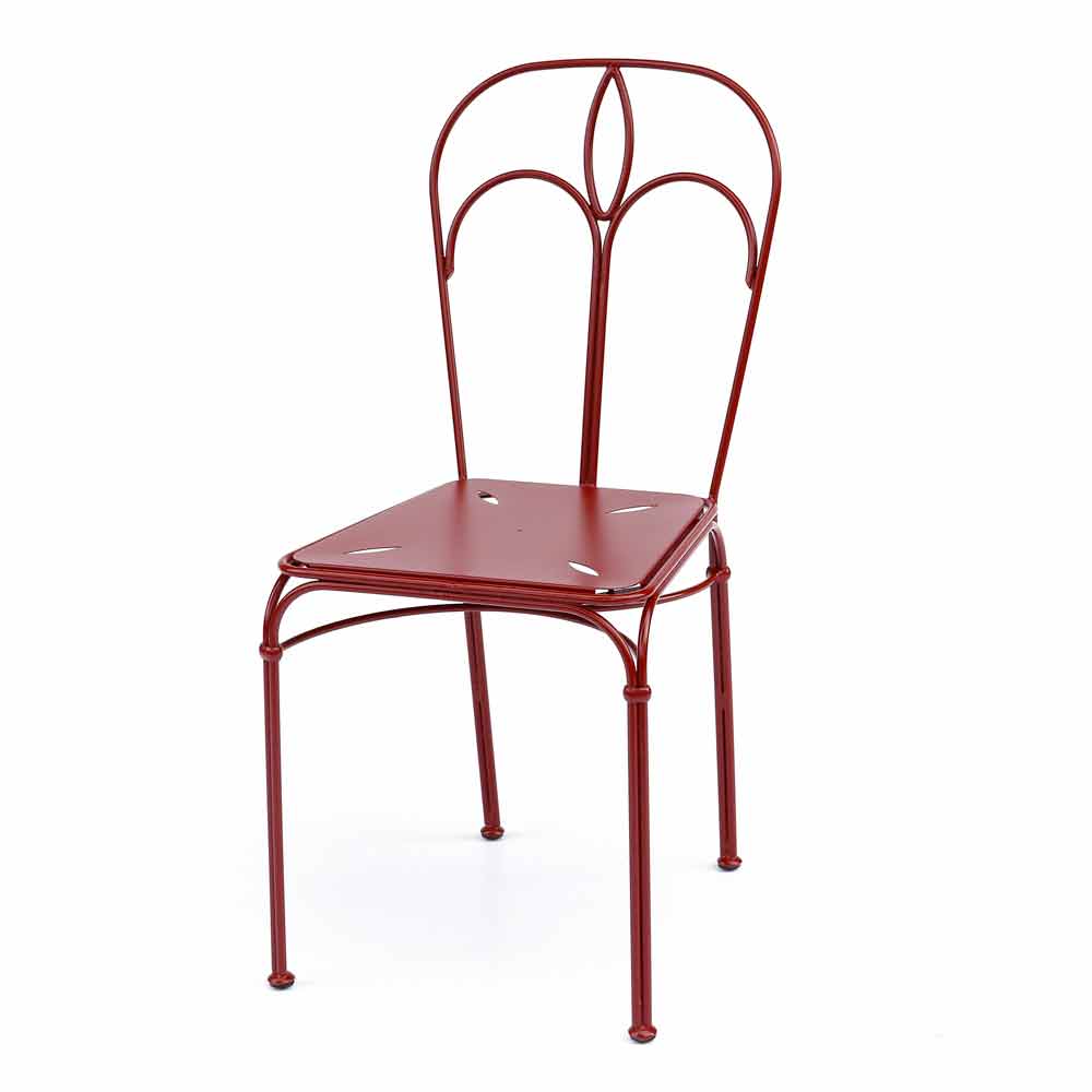 Venkovní židle s jednoduchým a univerzálním designem vyrobená výhradně v Itálii s červeně lakovanou železnou strukturou a odnímatelným polštářem na sedadlo z akrylové látky v provedení ekru. Řešení pro venkovní prostředí se střízlivými a elegantními liniemi charakterizovanými designem, který je inspirován bezstarostností bouřlivých let. Tenké a univerzální tvary dodávají produktu úžasný pocit lehkosti, který je schopen obohatit jakýkoli venkovní prostor o exkluzivní nádech. Polštář také nabízí pohodlné a příjemné sedadlo schopné zvýšit funkční stranu židle. Aby byla zajištěna vysoká kvalita produktu, jsou zvoleny drahé materiály, 100% italské řemeslné zpracování a žárové zinkování , které představuje nejúčinnější ošetření proti jakémukoli druhu koroze železa, od solí až po kyselost dešťů, tedy nabízí extrémně odolný kus nábytku, který se dokonale přizpůsobí jakémukoli venkovnímu prostoru a jakýmkoli klimatickým podmínkám.