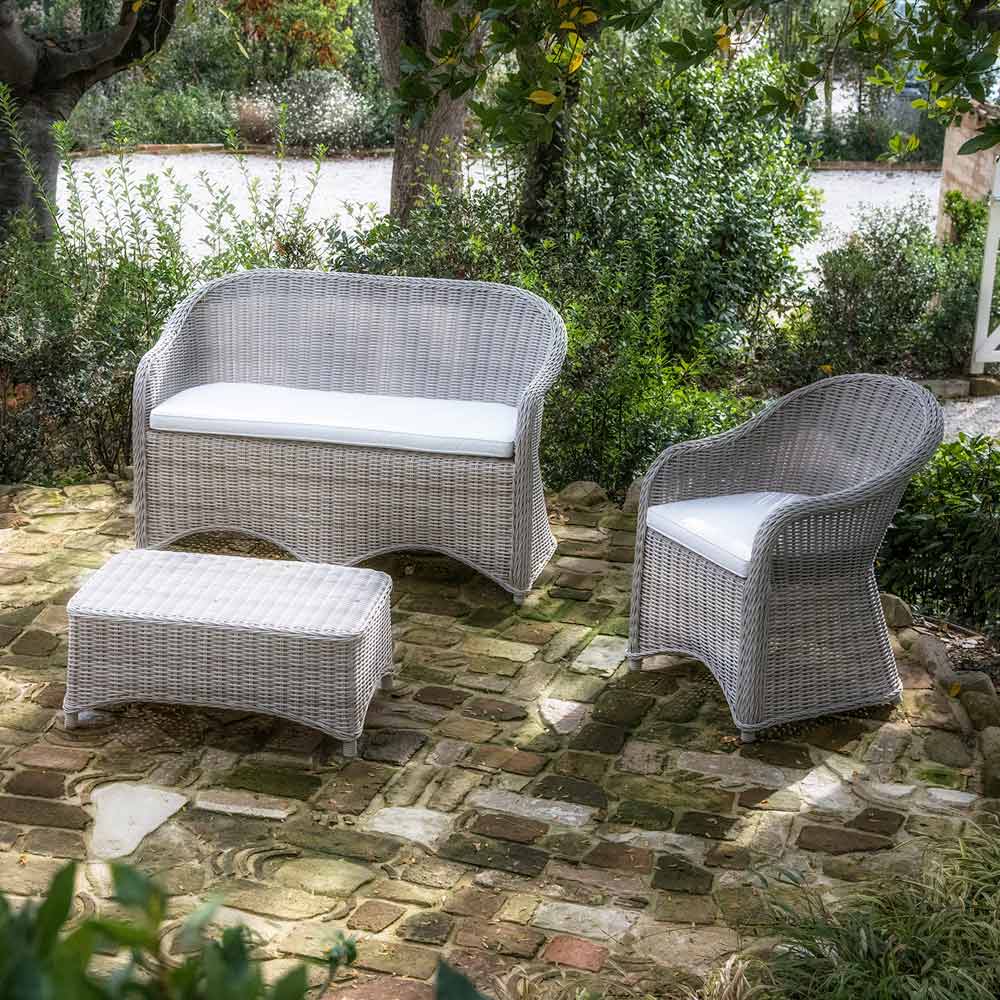 hliníkovým rámem a výpletem z polyratanu HQ, sedák s polštářem z bílé venkovní