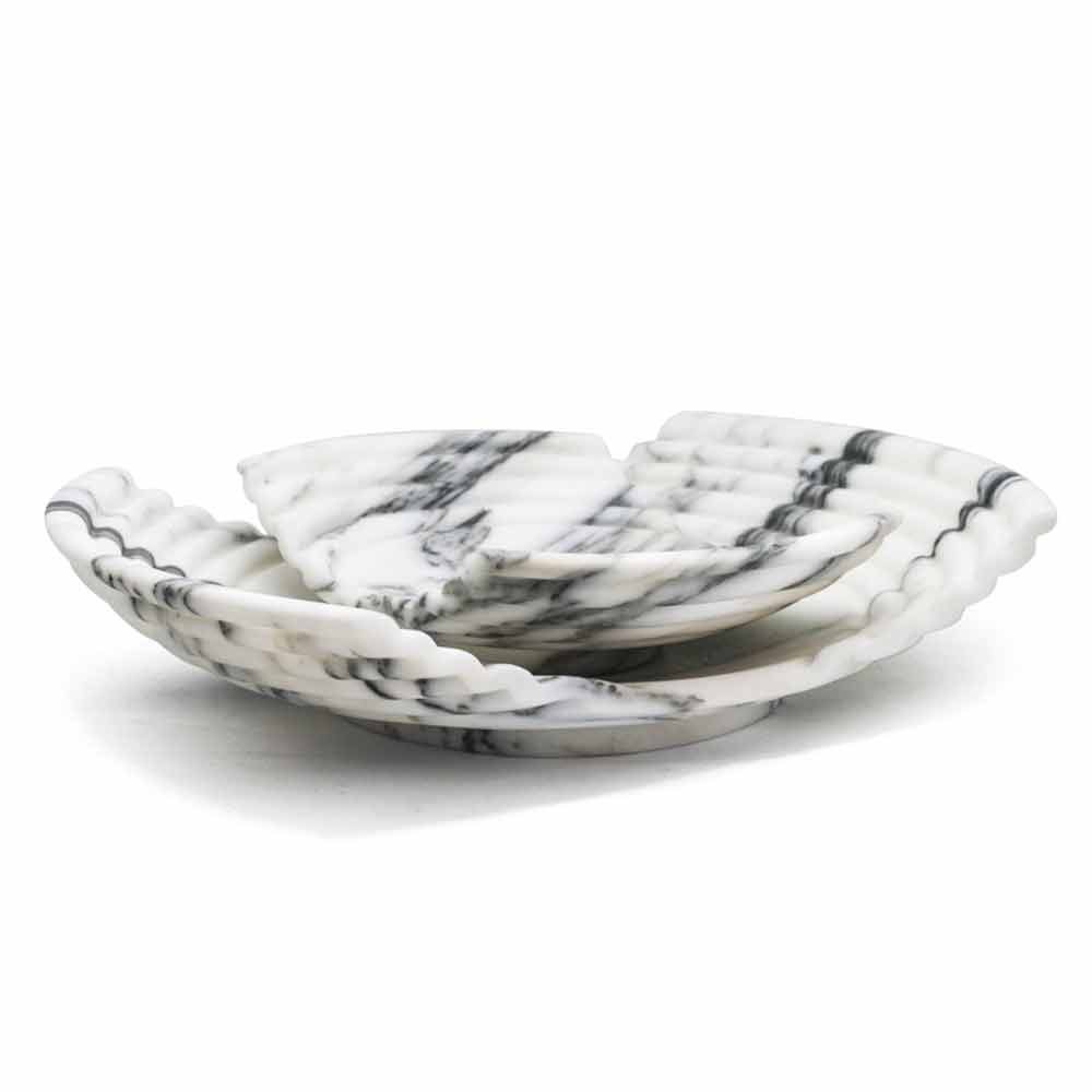 Zakřivený dekorativní designový podnos vyrobený z vysoce kvalitního arabeskového mramoru Made in Italy.