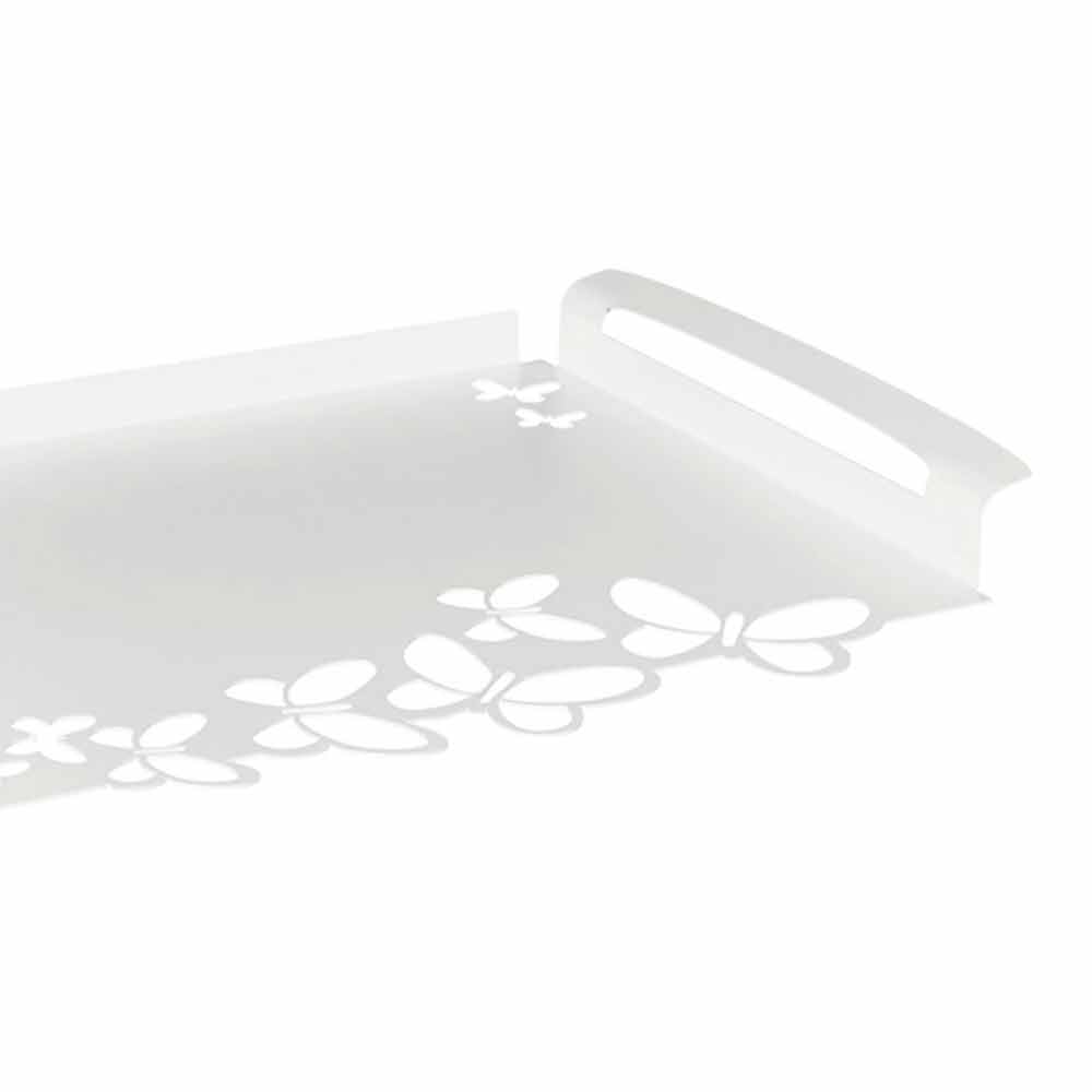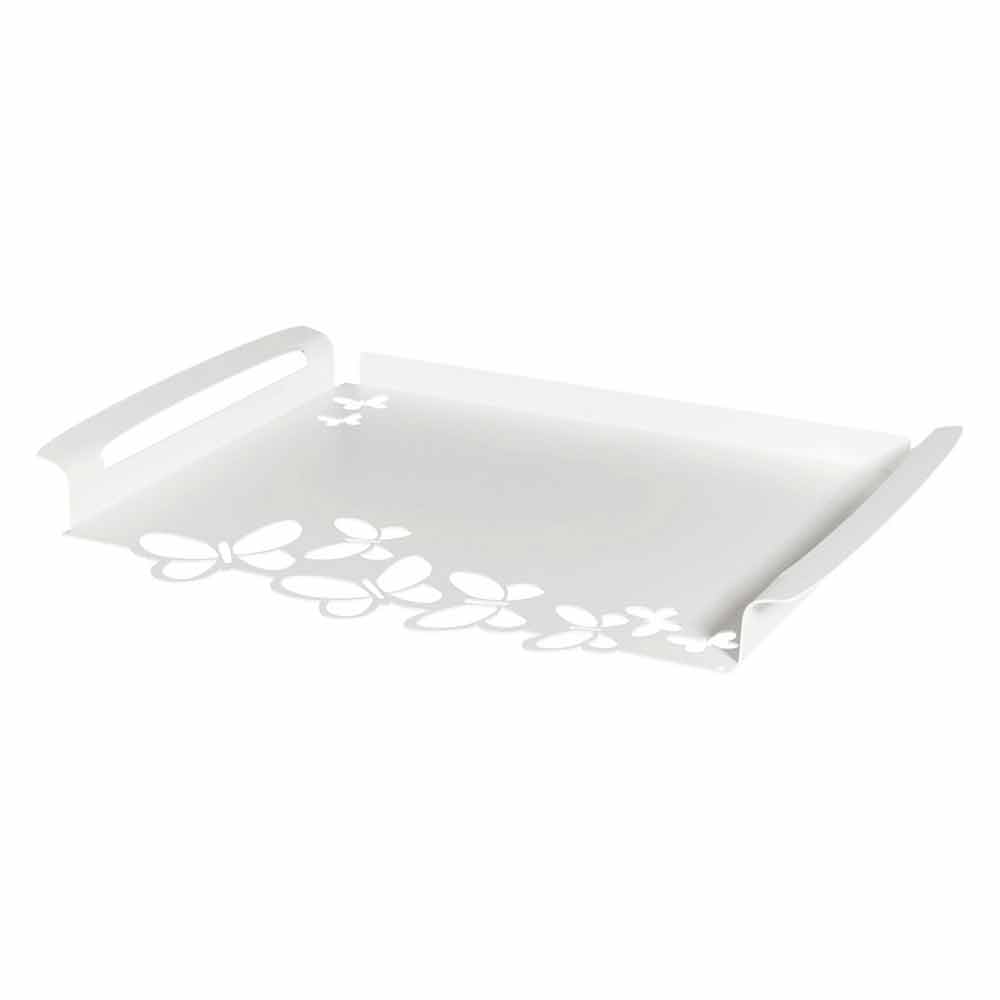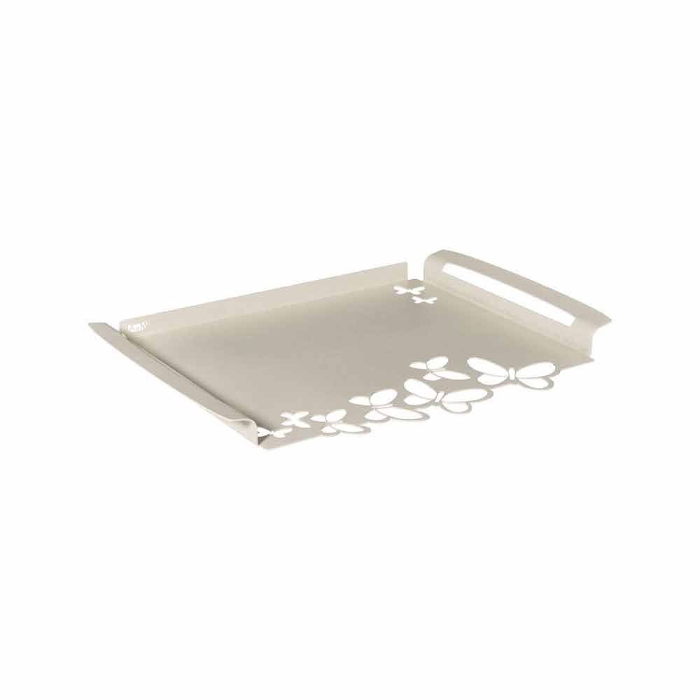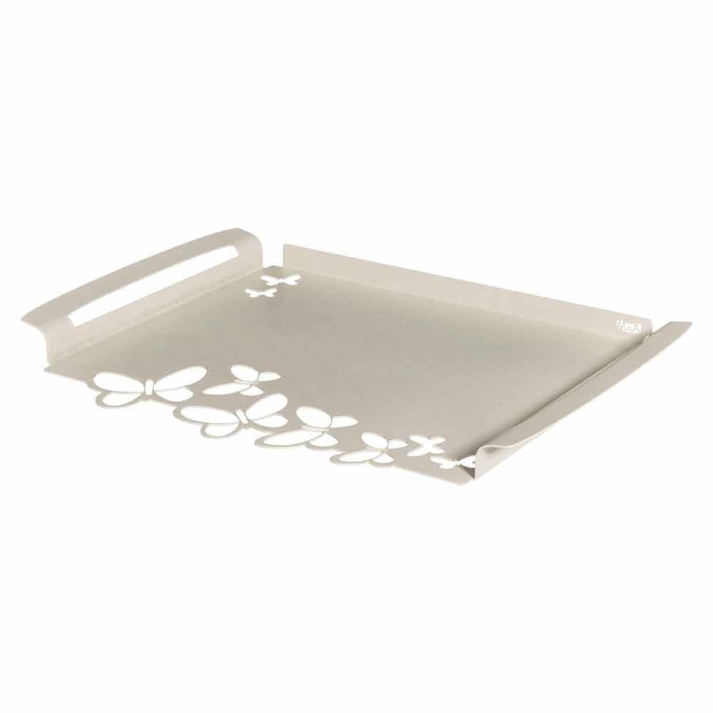 Moderní obdélníkový servírovací podnos v bílé, béžové nebo slonovinové železě ručně vyráběné v Itálii.