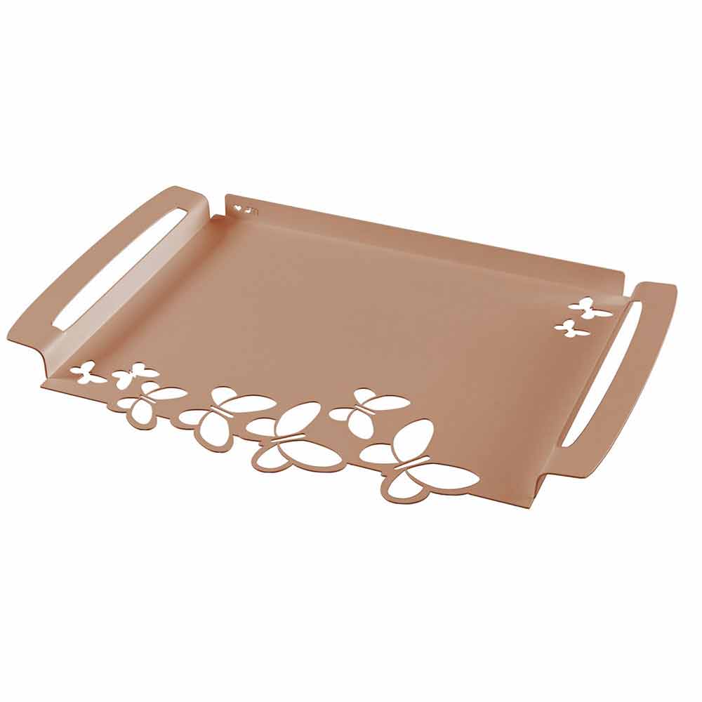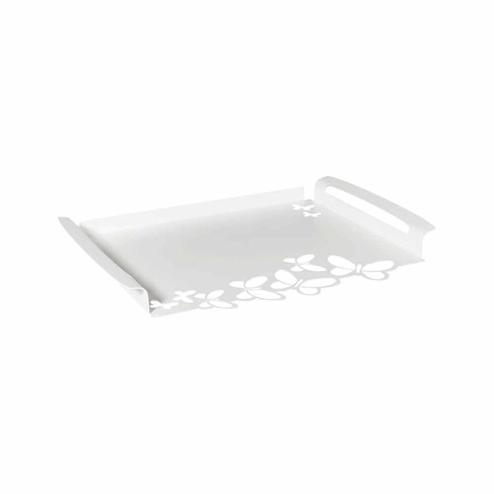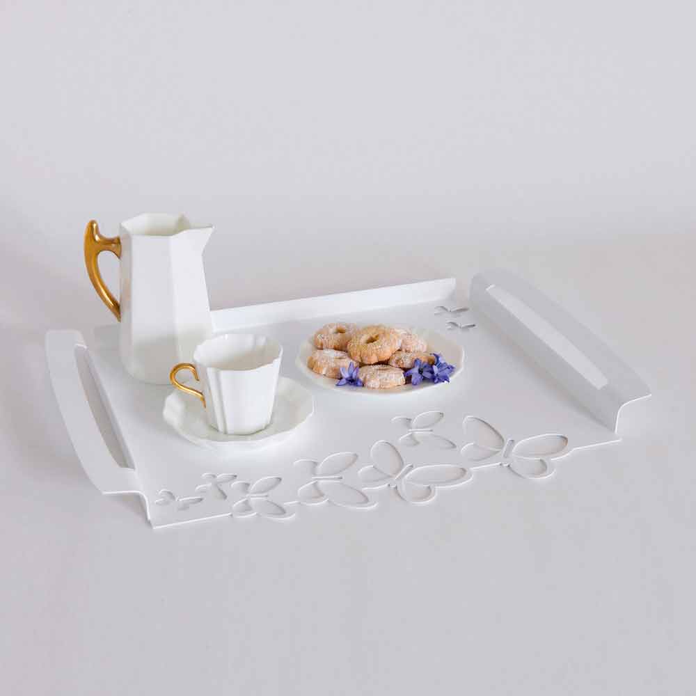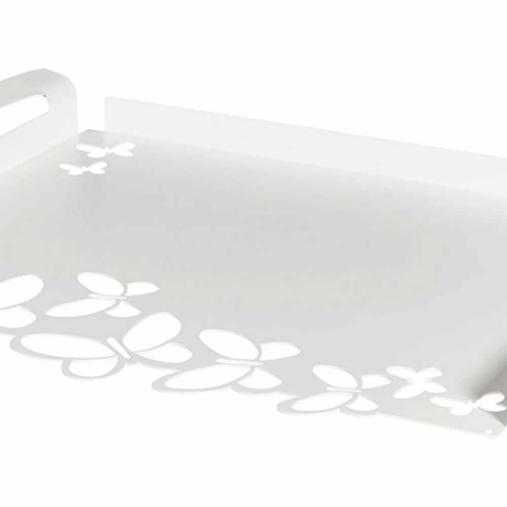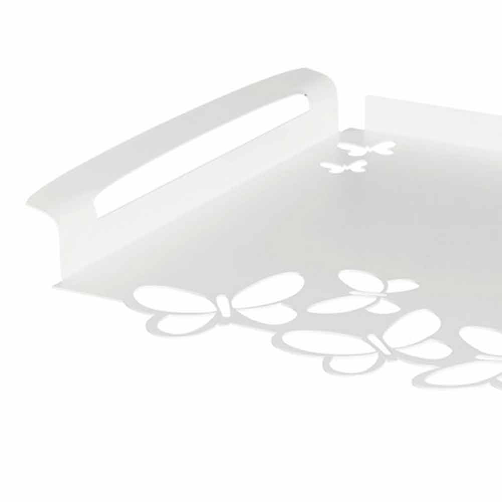 Moderní obdélníkový servírovací podnos v bílé, béžové nebo slonovinové železě ručně vyráběné v Itálii.