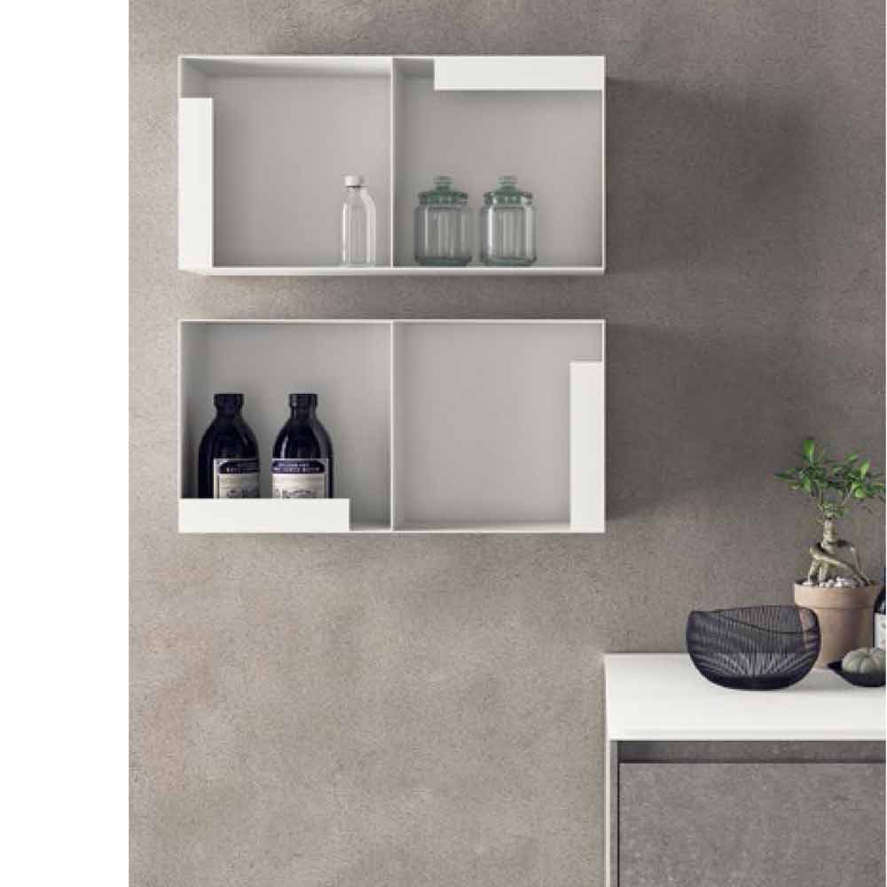 Minimální a moderní složení koupelny, závěsný design s policemi, vyrobené v Itálii.