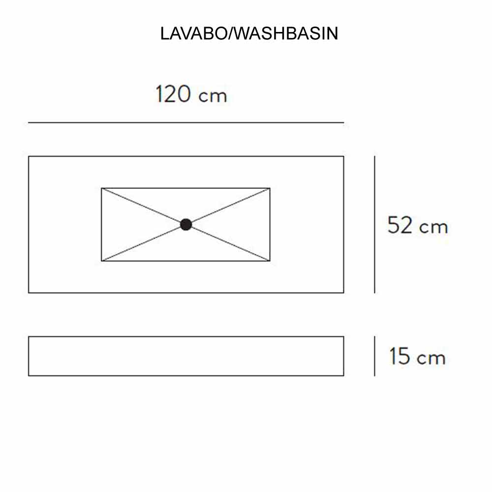 Složení zahrnuje:- závěsná konzola s integrovaným středovým umyvadlem: Š 120 x H 52 x V 15 cm