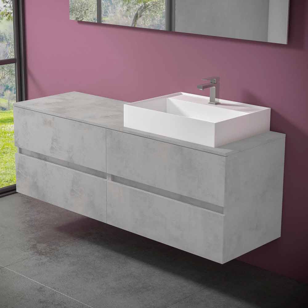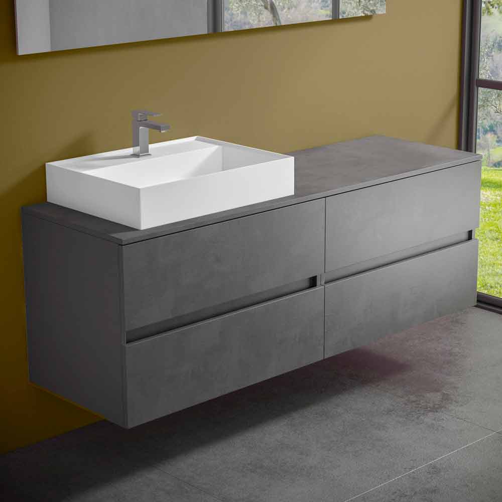 Jedná se o závěsný koupelnový nábytek s umyvadlem na desku, který se vyznačuje moderním a nadčasovým designem s geometrickými a základními liniemi pro moderní a elegantní atmosféru, aniž by byla obětována praktičnost a funkčnost.