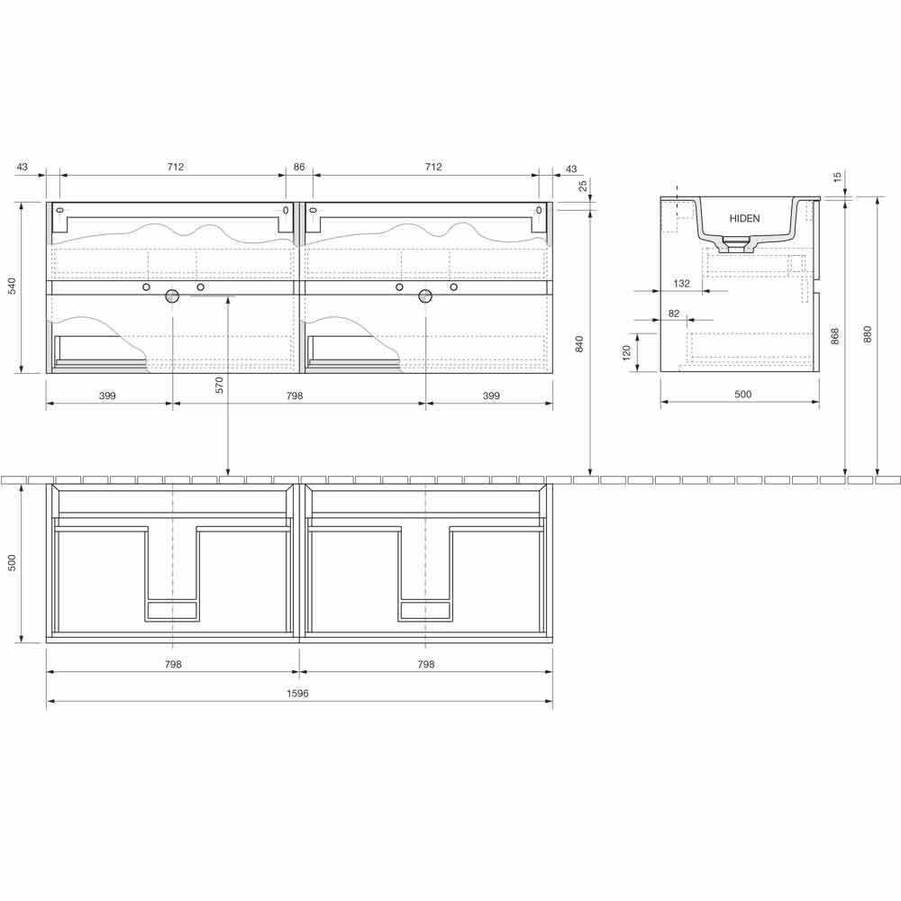 | Opatření | Umyvadlo: L 160 x P 50 x H 50 cm Umyvadlo: L 160,5 x P 50,5 x H 15 cm |