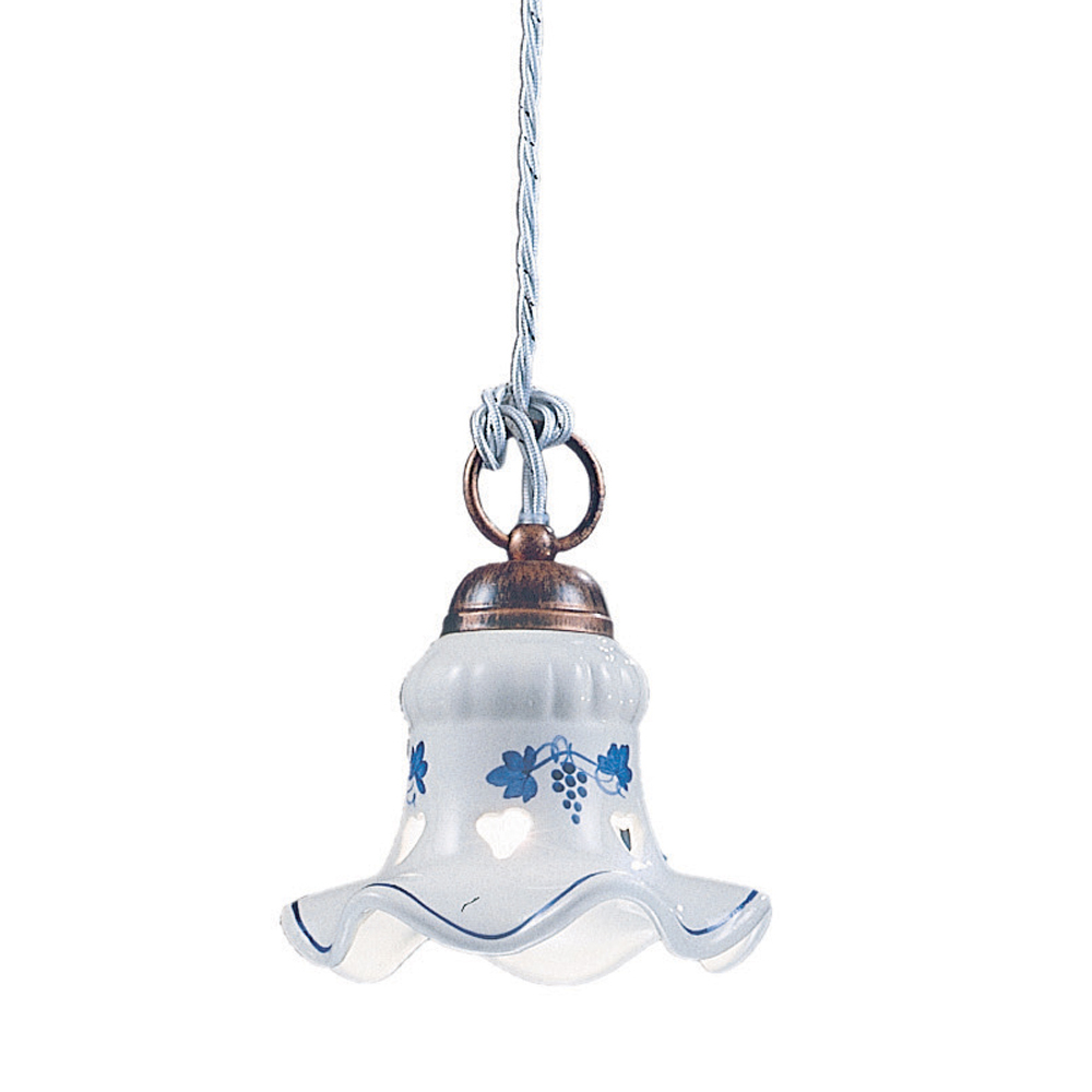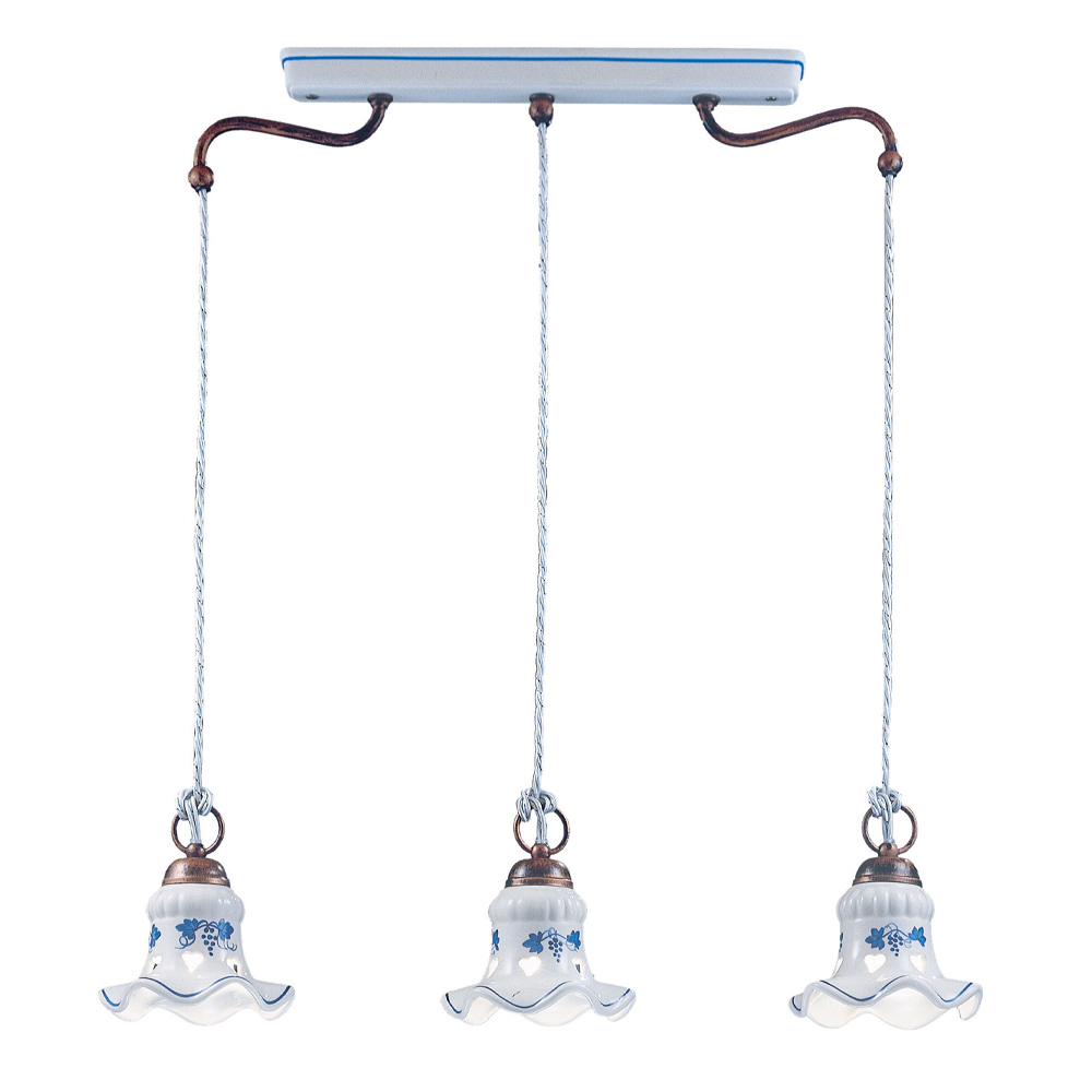 Závěsná lampa se 3 světly ze železa a ručně zdobené keramiky, italské výroby Ferroluce.