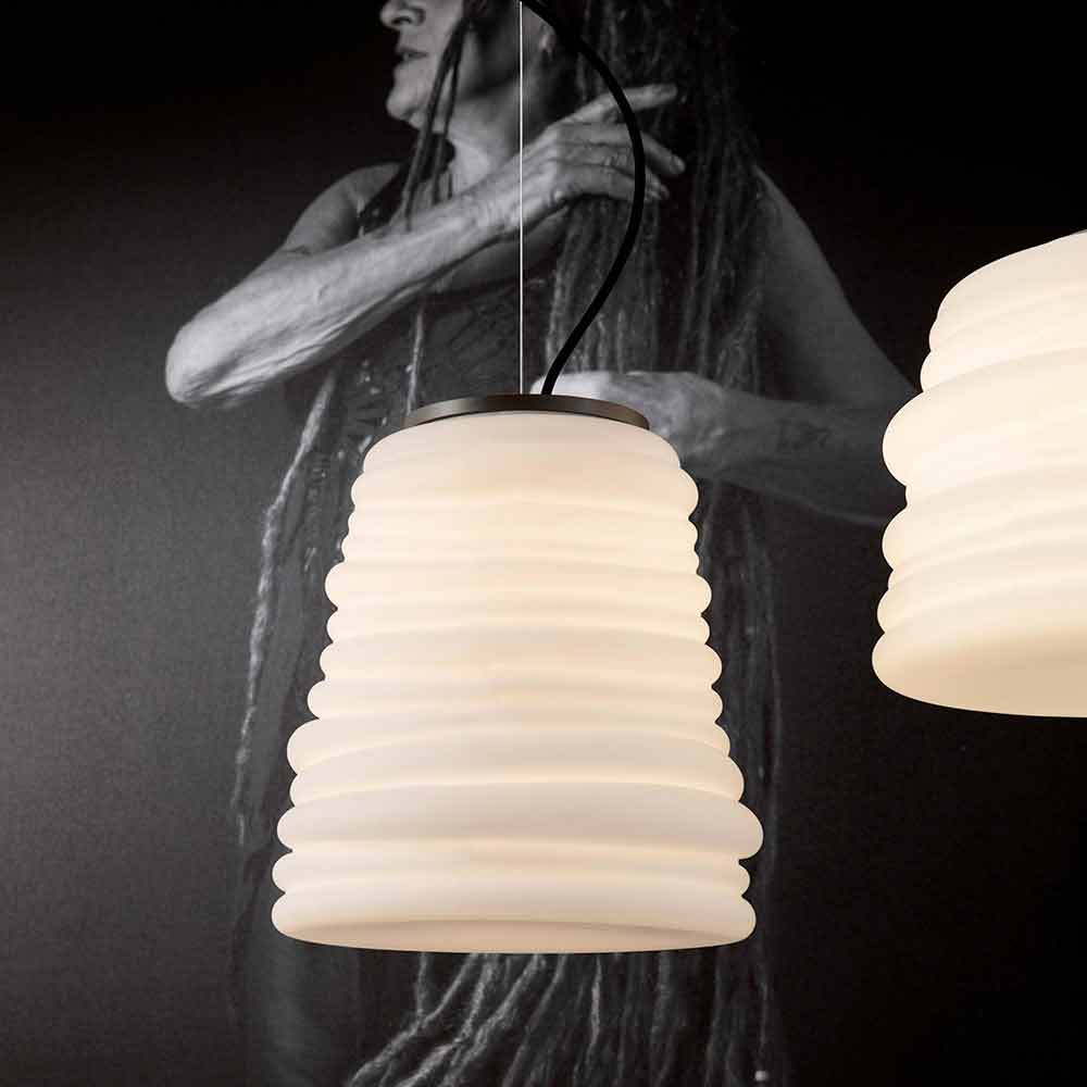 Lampa je vyrobena ze saténového bílého skleněného stínítka pro zcela italský design, který díky nekonvenčním experimentům a neustálému výzkumu mezi tradicí a moderností dokáže ohromit, odvážit se a vzrušit, což vám umožní vyjádřit své emoce originálním a osobním dekorativním použitím světla.