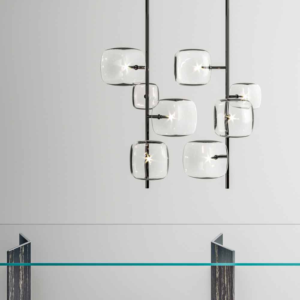 Designové závěsné svítidlo s leštěnou kovovou konstrukcí Vyrobeno v Itálii.