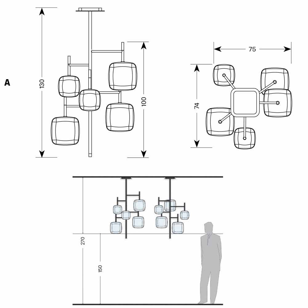 průhledném foukaném pyrexovém skle v závislosti na zvolené velikosti. Ideální také pro více instalací v různých výškách, což dává