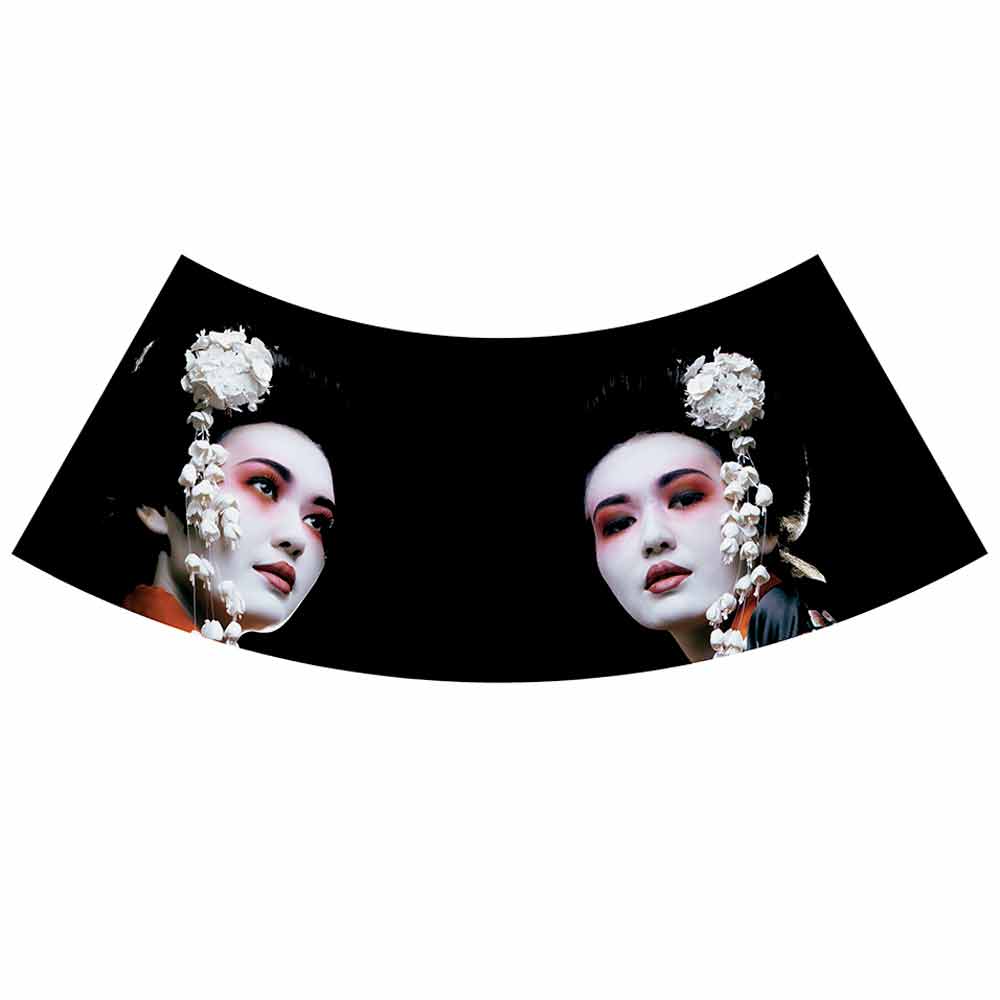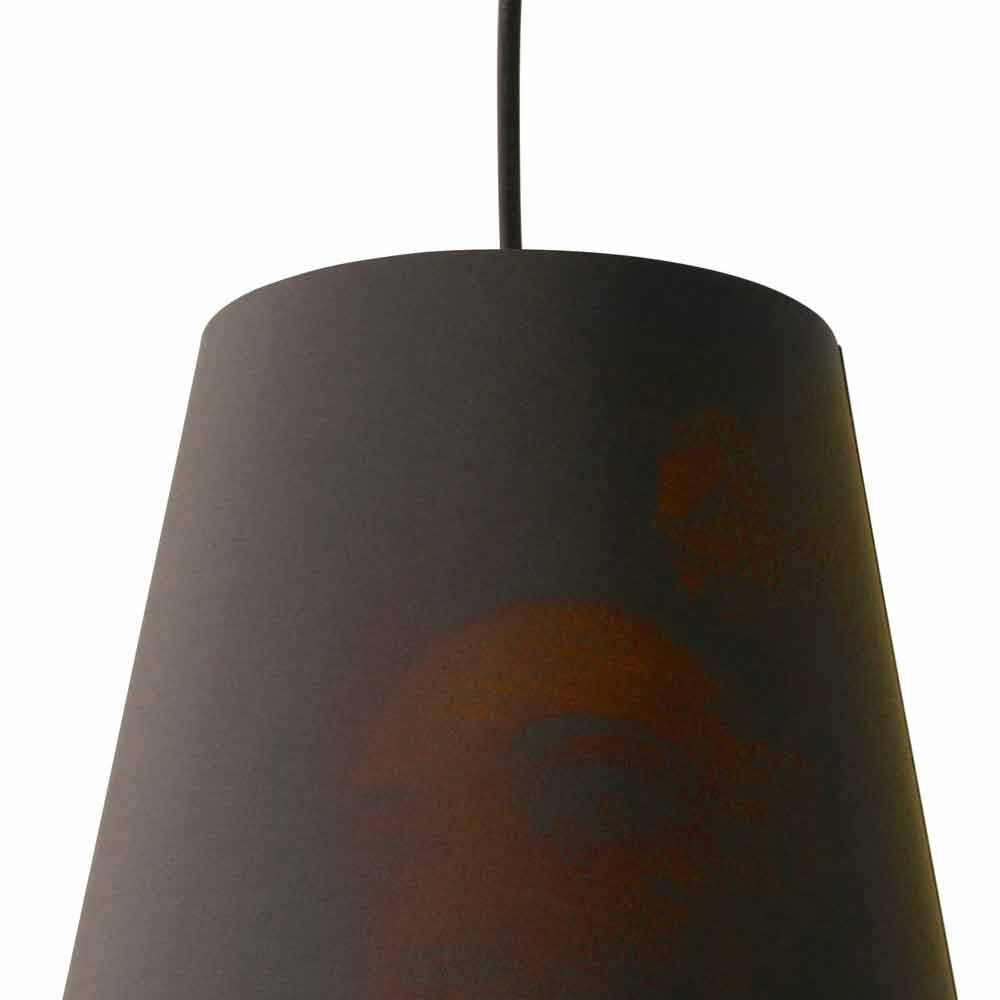 Tato originální a jedinečná závěsná lampa byla vytvořena s cílem zajistit, aby svět technického a dekorativního osvětlení koexistoval a koexistoval. Doplněk, ve kterém se kombinuje estetika a funkčnost ve prospěch moderního designu skládajícího se z stínidla z antracitové textilie, které dodává interiéru efekt „vidět nevidím“, který skrývá jeho hlavní zvláštnost: moderní vnitřní potisk tváře žena schopná vzbudit sugestivní atmosféru a prolomit tradiční schémata.