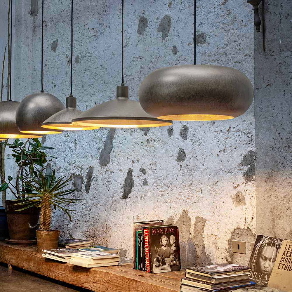 Designové ocelové závěsné svítidlo Materia od Alda Bernardiho, vyrobené v Itálii.