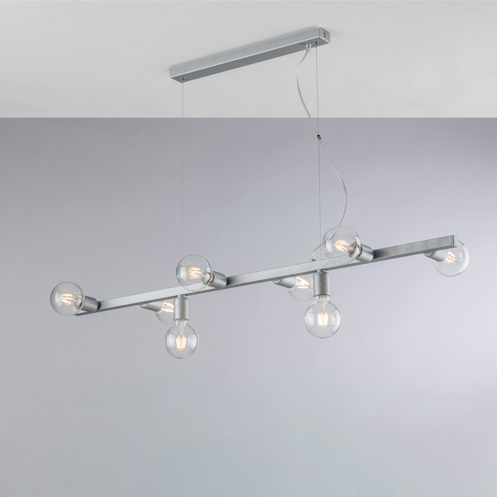 Tato ručně vyrobená železná závěsná lampa je elegantní, moderní a zároveň elegantní. Je to osvětlovací řešení určené pro moderní a sofistikované prostory. Jednoduchá, vyvážená horizontální konstrukce v sobě ukrývá kulové skleněné difuzory , které poskytují rozptýlené, rovnoměrné a dramatické světlo.