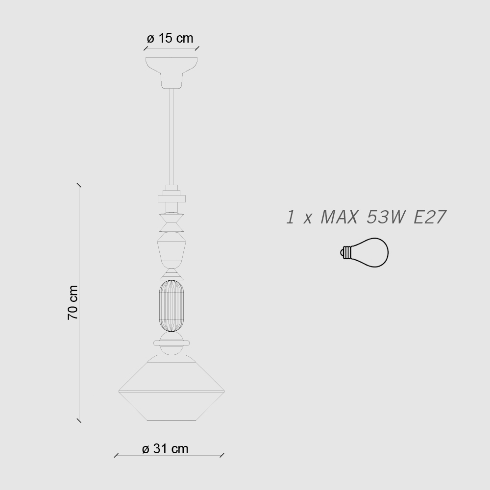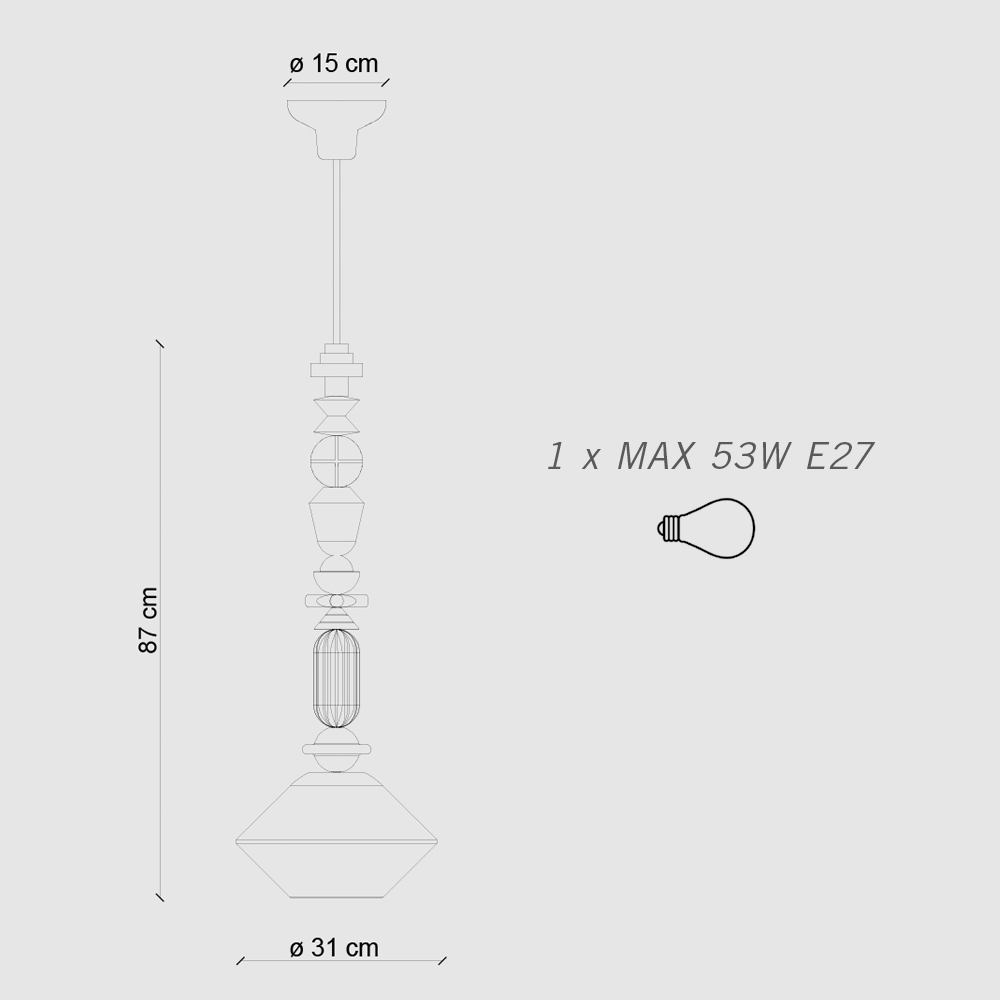 Mléčně bílé skleněné stínidlo zajišťuje homogenní rozptyl světla, ideální pro vytvoření teplé a příjemné atmosféry. Vertikální design je zvláště vhodný pro umístění nad jídelní stoly nebo pro vítání hostů do vstupní haly s odvážným stylem.