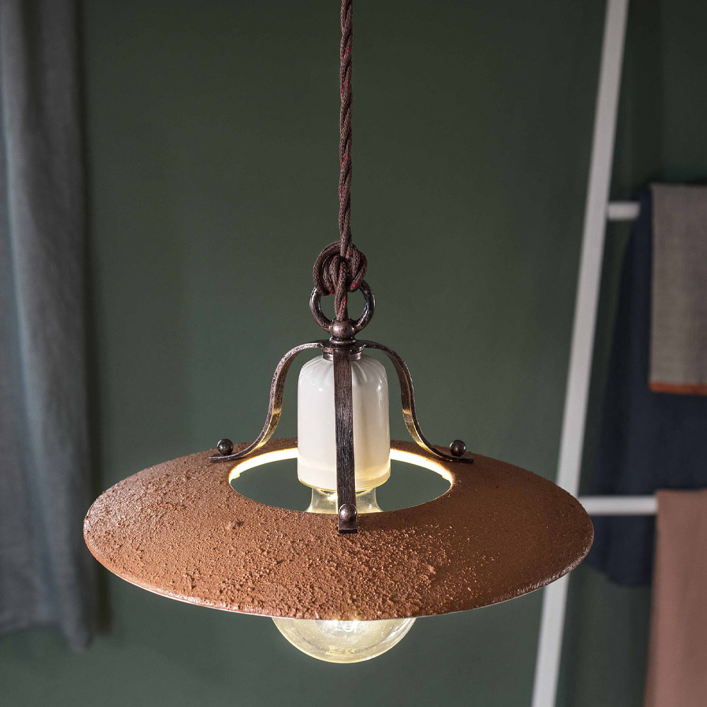 Závěsná lampa ze železa a ručně vyráběné hrubé keramiky, 3 velikosti vyrobené v Itálii společností Ferroluce.
