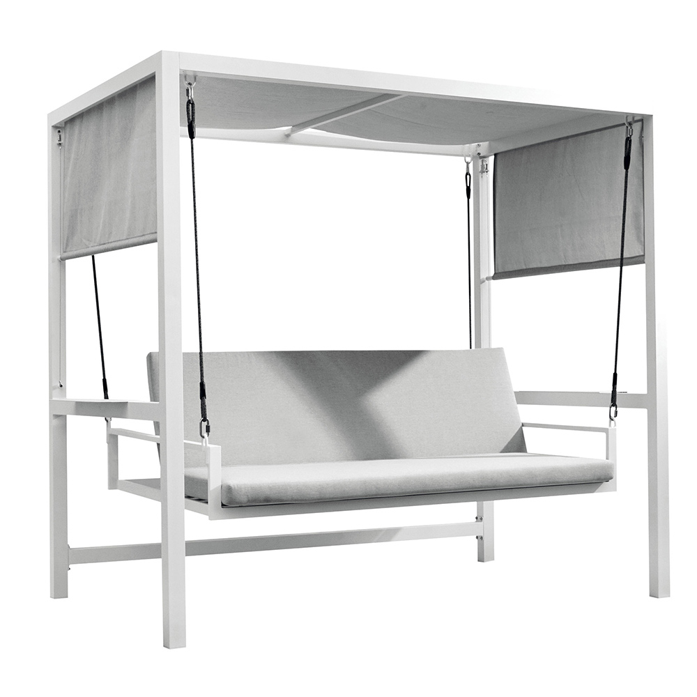 Zahradní houpačka vyrobená z bíle lakovaného hliníku se 190 gr olefinovými látkovými polštářky ve světle šedé barvě. Tato venkovní houpačka je vybavena sklopným opěradlem , díky kterému je ideální pro vytvoření relaxační atmosféry a užívání si volného času venku. Venkovní houpačka ztělesňuje tuhé a odolné konstrukce a čisté a jednoduché linie , díky kterým je rafinovaná a ideální pro odpočinek a relaxaci v jakémkoli venkovním prostředí. Použití hliníku pro konstrukci zvyšuje pevnost a funkčnost tohoto produktu, odolného vůči nárazu a klimatickým změnám.
