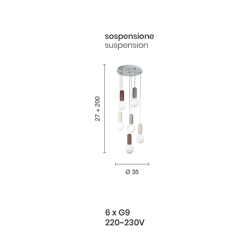 - 6 světel - průměr 35 x V 227 cm (6x G9 220-230V);