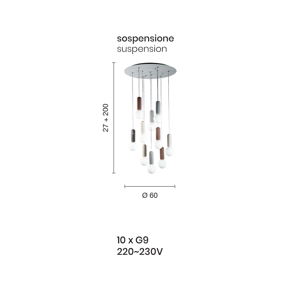 - 10 světel - průměr 60 x V 27 cm (10x G9 220-230V).