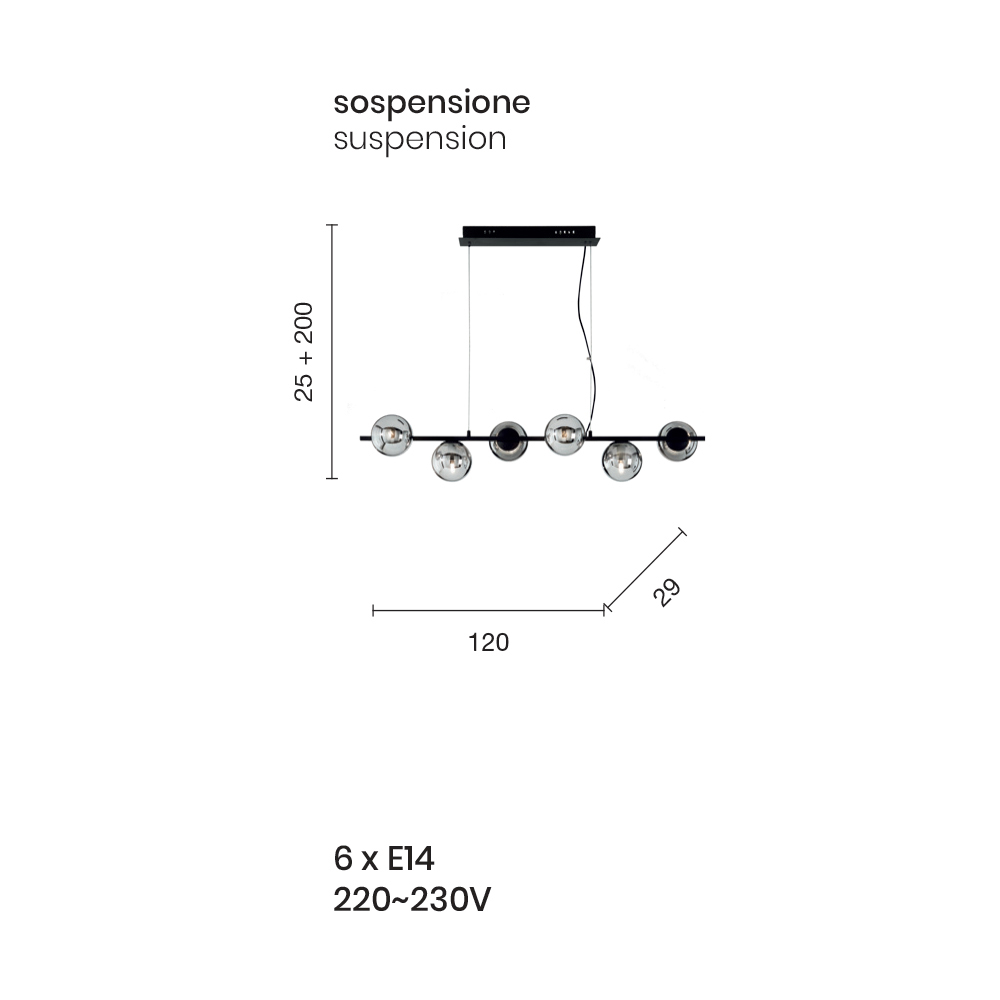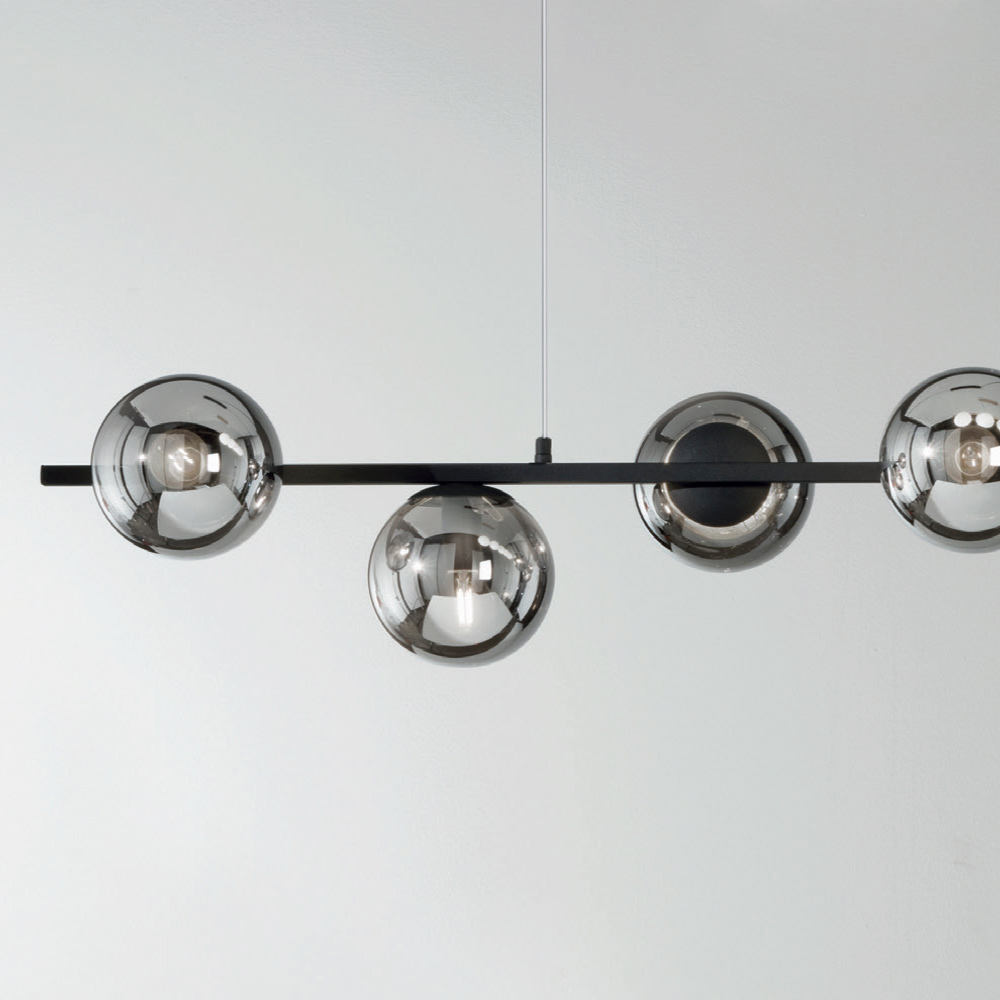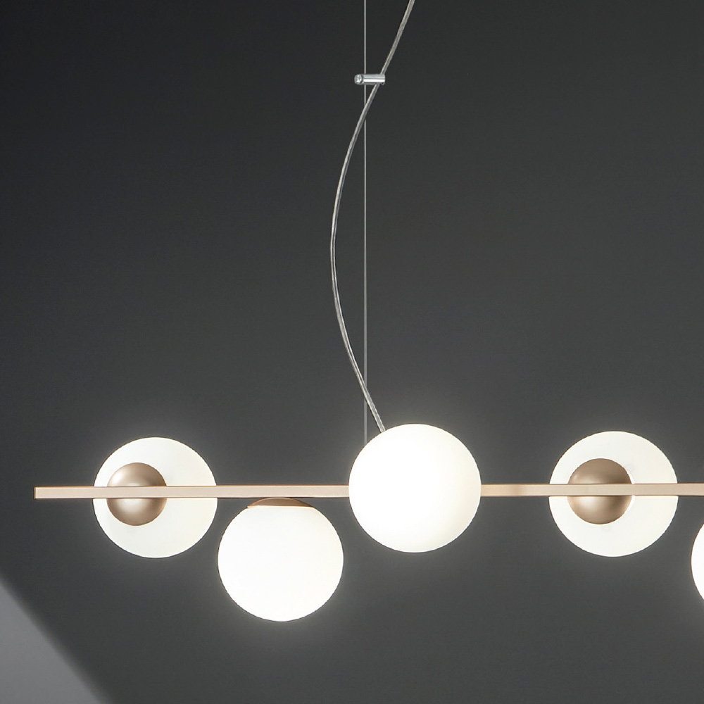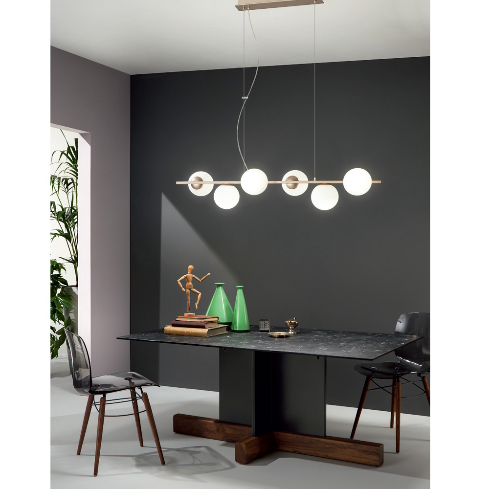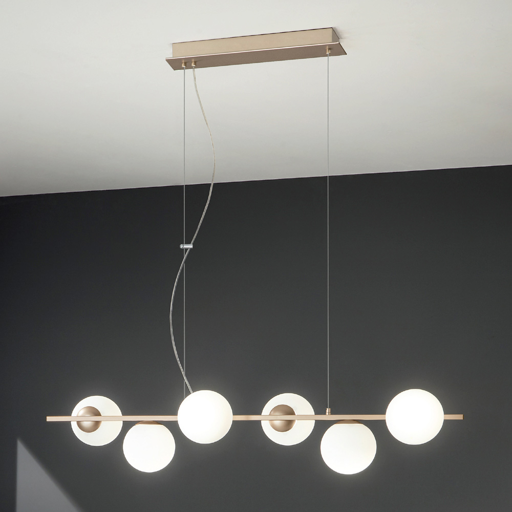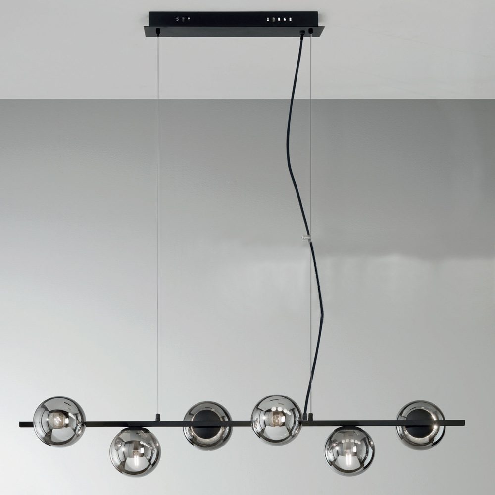 Závěsné svítidlo se 6 světly s kovovou konstrukcí a kulovými