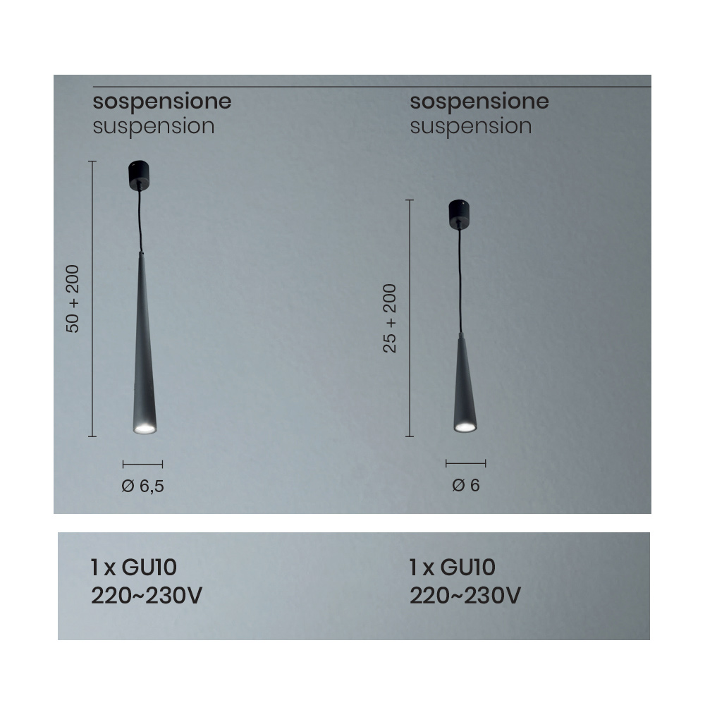 čistý, jednoduchý a minimalistický design. Dostupné povrchové úpravy: Dostupné velikosti:- průměr: 6,5 x V max 250 cm
