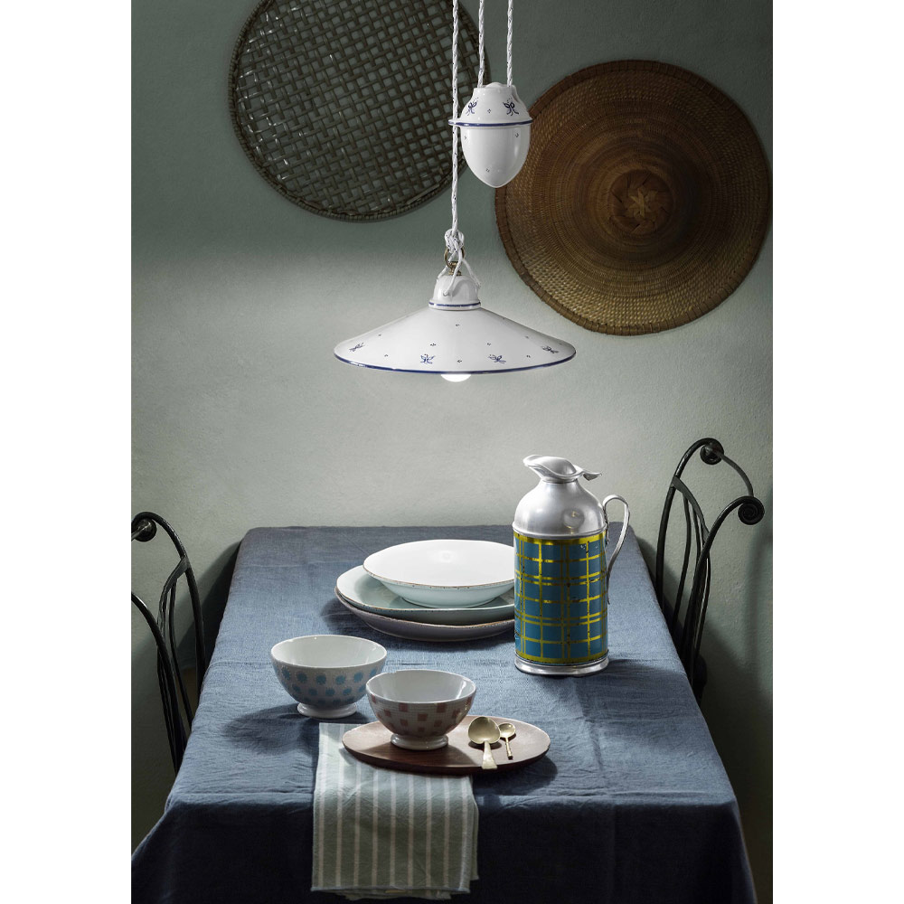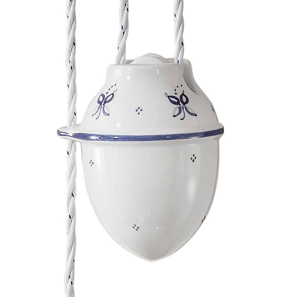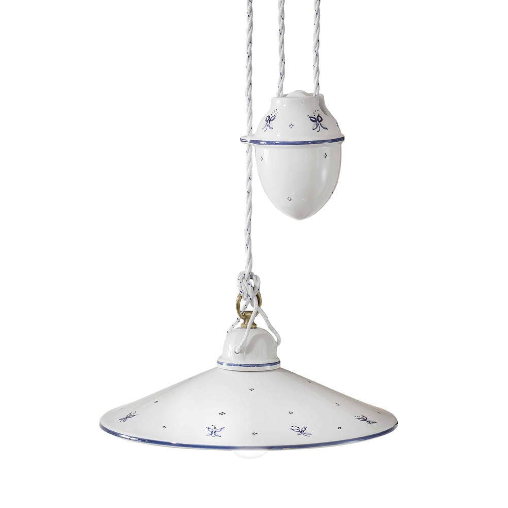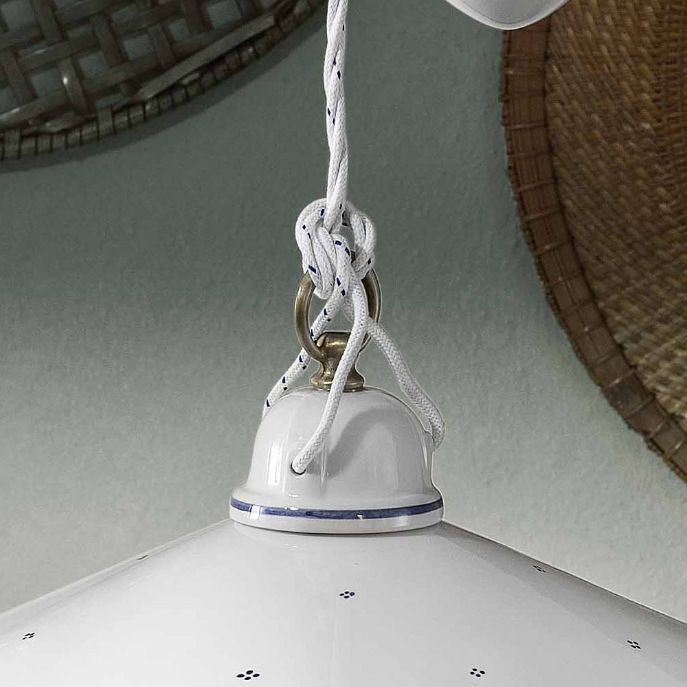 Závěsná lampa s upy a downs z ručně malovaného železa a keramiky, vintage 2 velikosti, italská výroba Ferroluce.