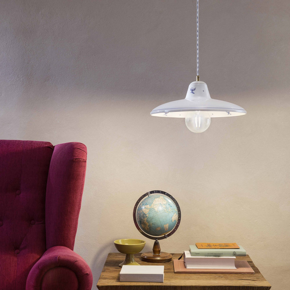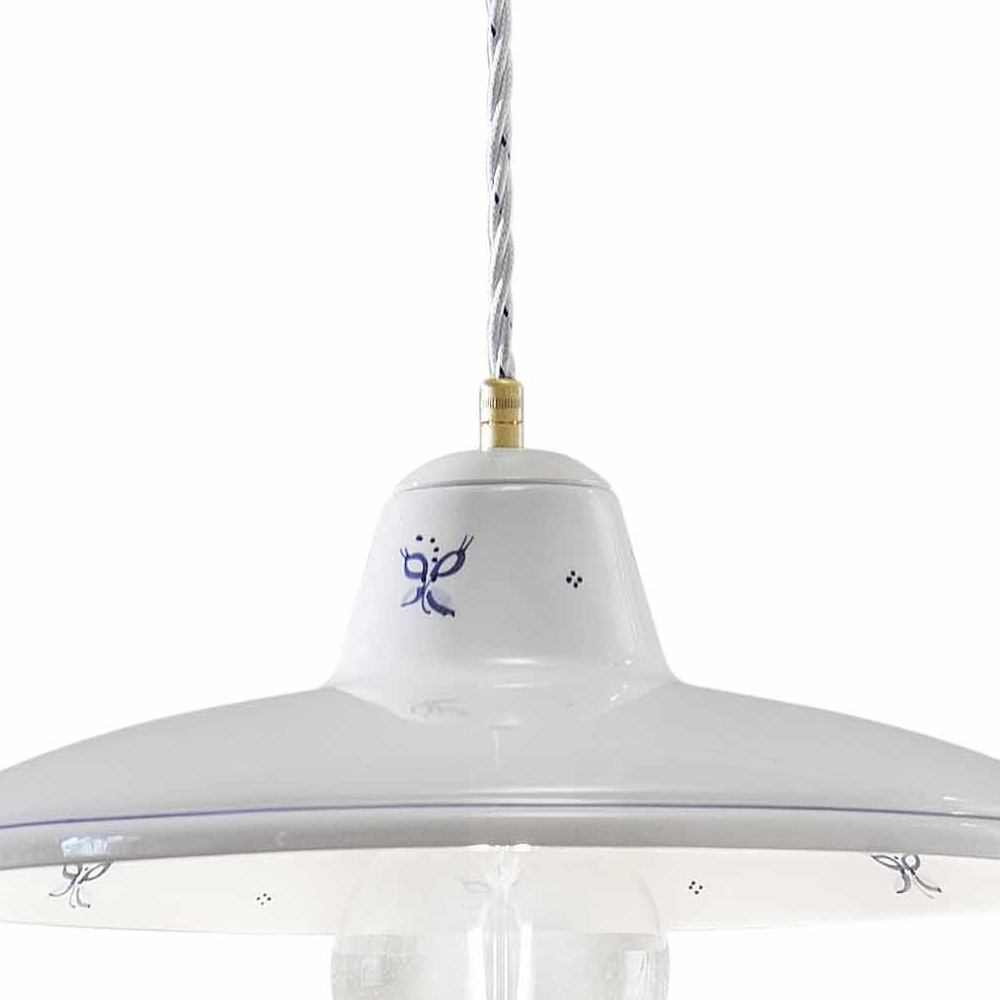 Ručně zdobená závěsná lampa ze železa a keramiky, vyrobená v Itálii firmou Ferroluce.