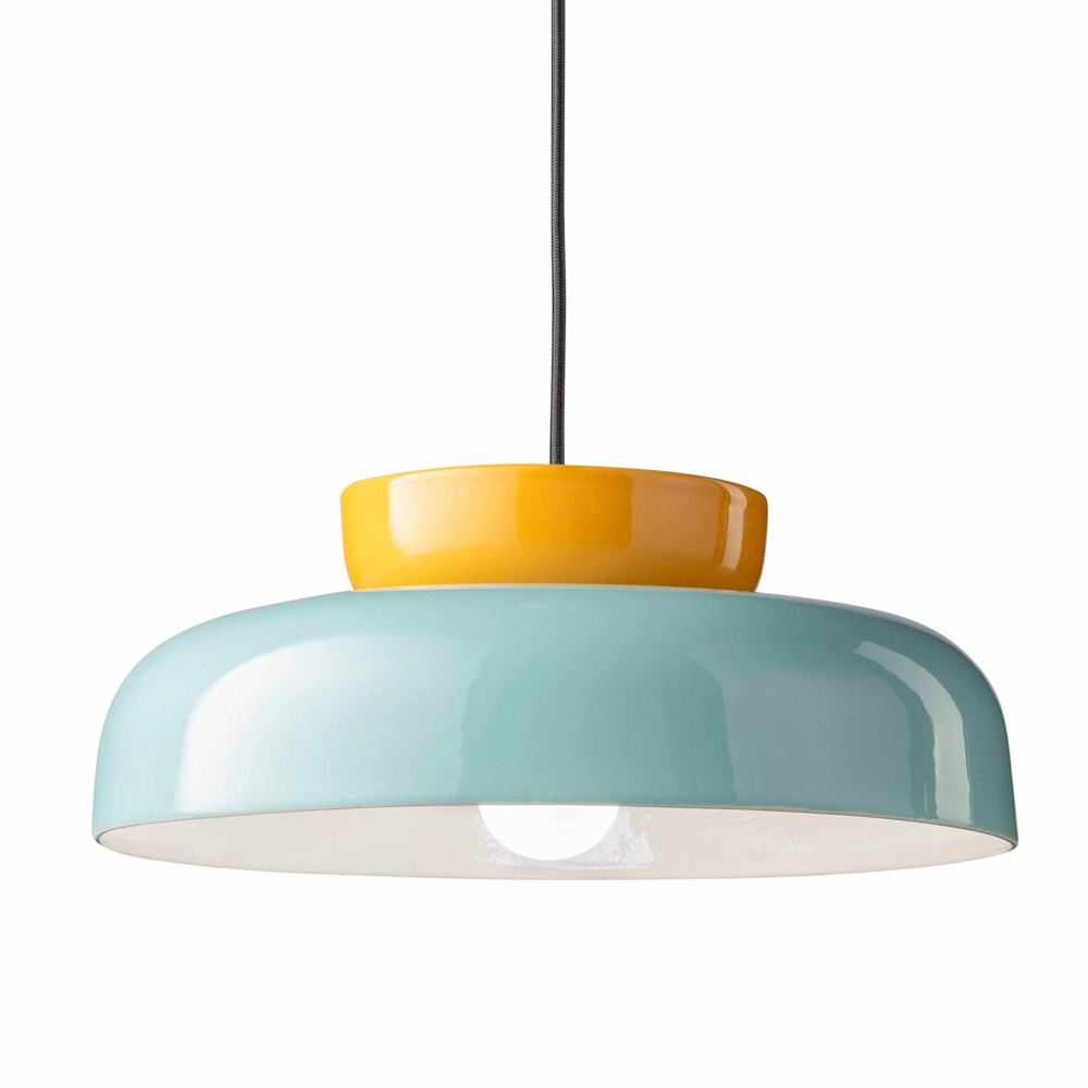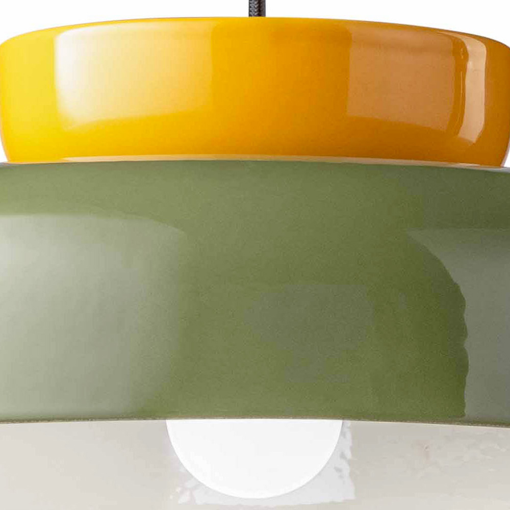 Závěsná lampa vyrobená z barevné keramiky a potaženého bavlněného kabelu, celá vyrobena v Itálii.