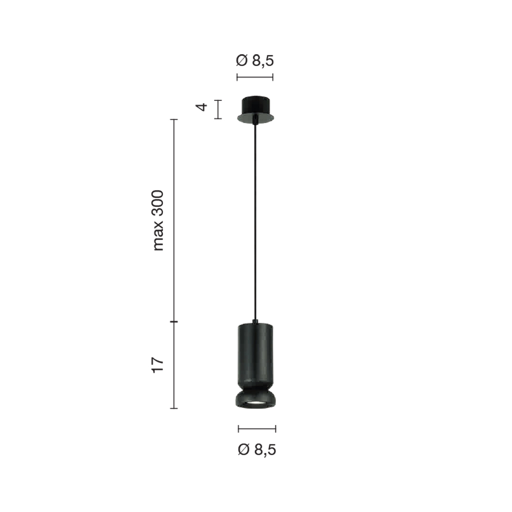Rozměry:- základna ve stropě: průměr 8,5 cm x výška 4 cm