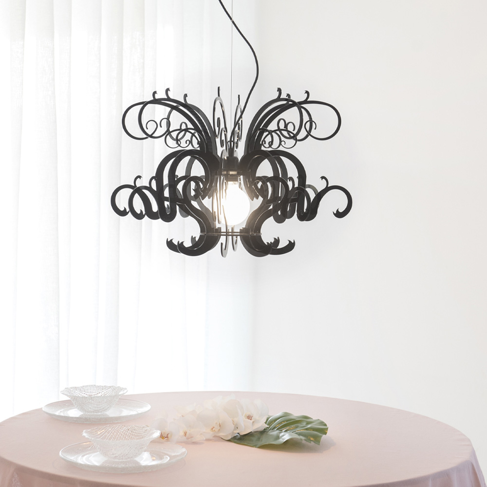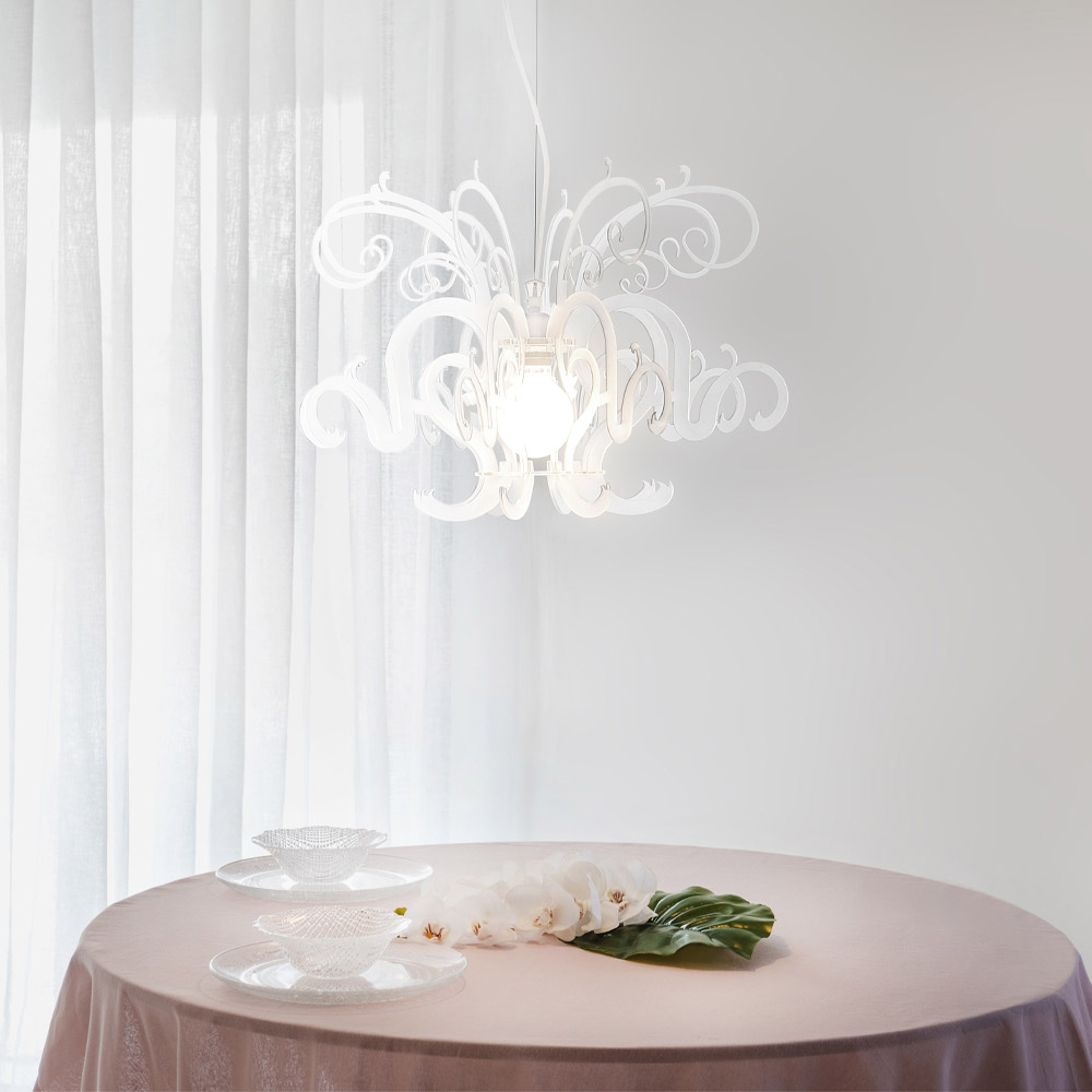 Luxusní a vysoce účinný závěsný lustr je odborně vytvořen liniemi a tvary, které zlepšují mimořádné optické vlastnosti prostupu světla