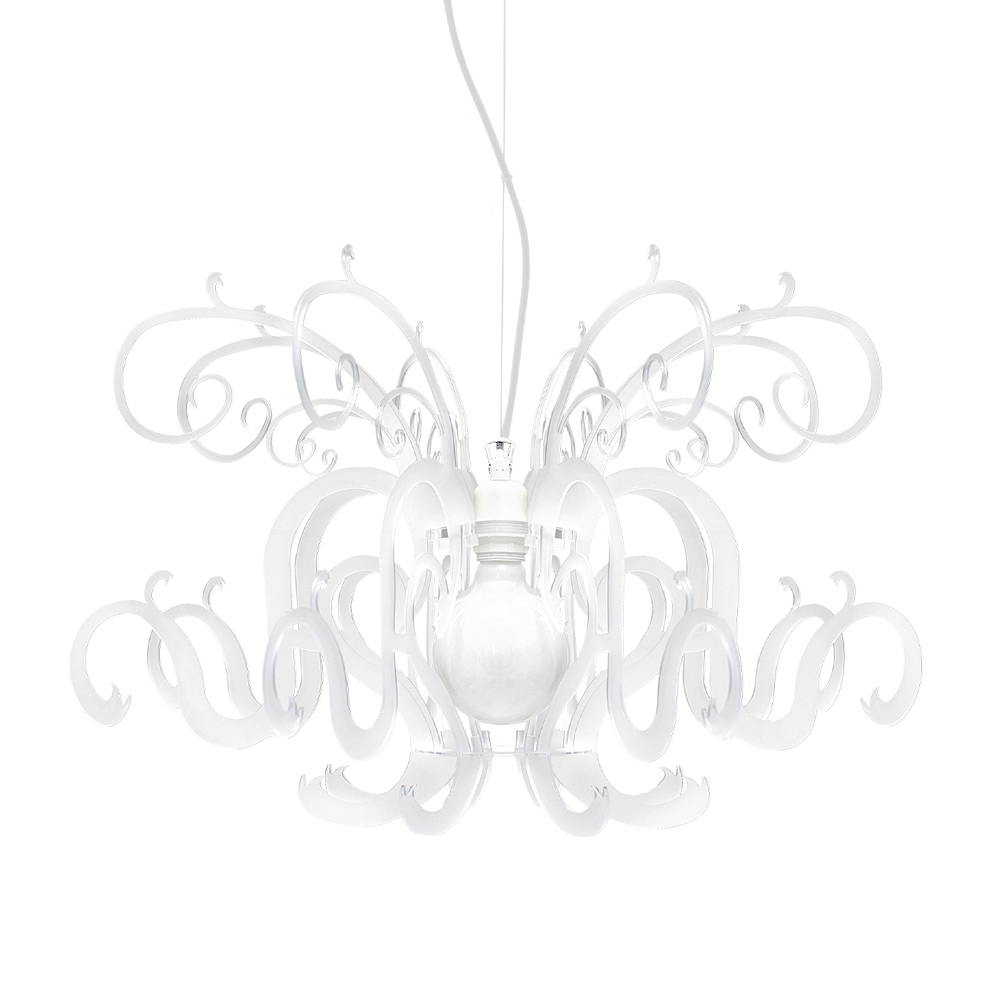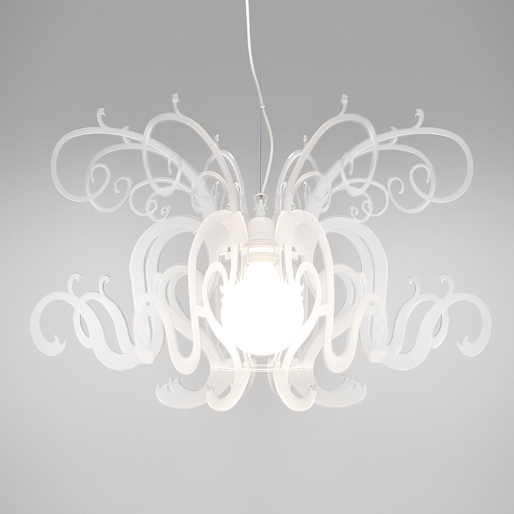 Závěsná lampa z recyklovatelného černého nebo bílého plexiskla vyrobená v Itálii.