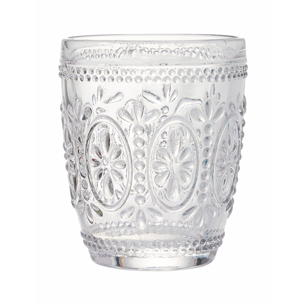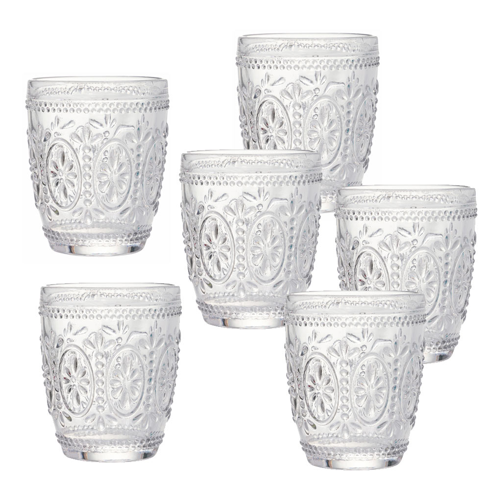 Sada sklenic na vodu z průhledného skla a barokních dekorací, 12 kusů.