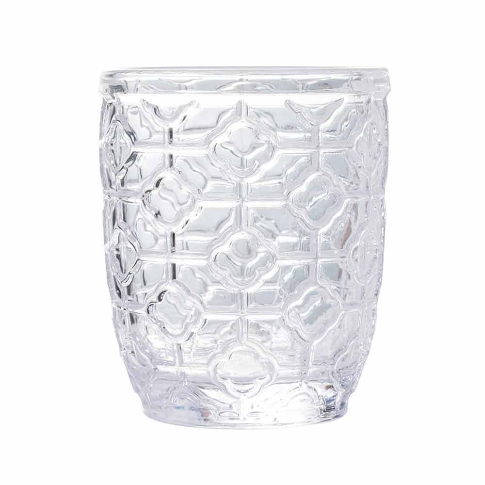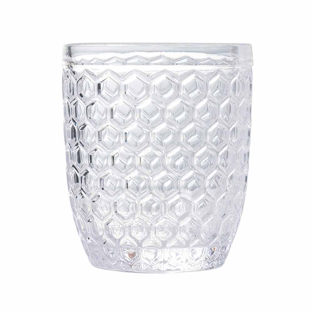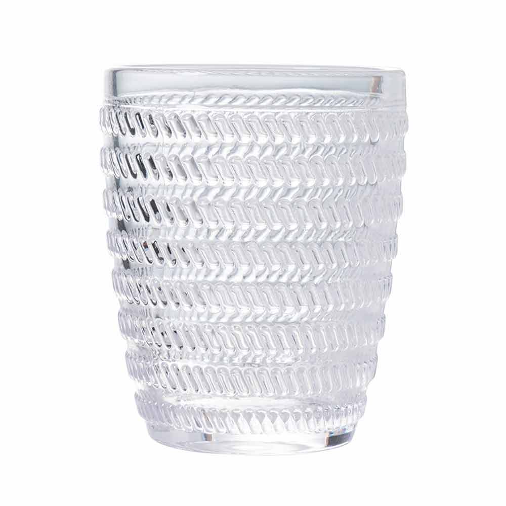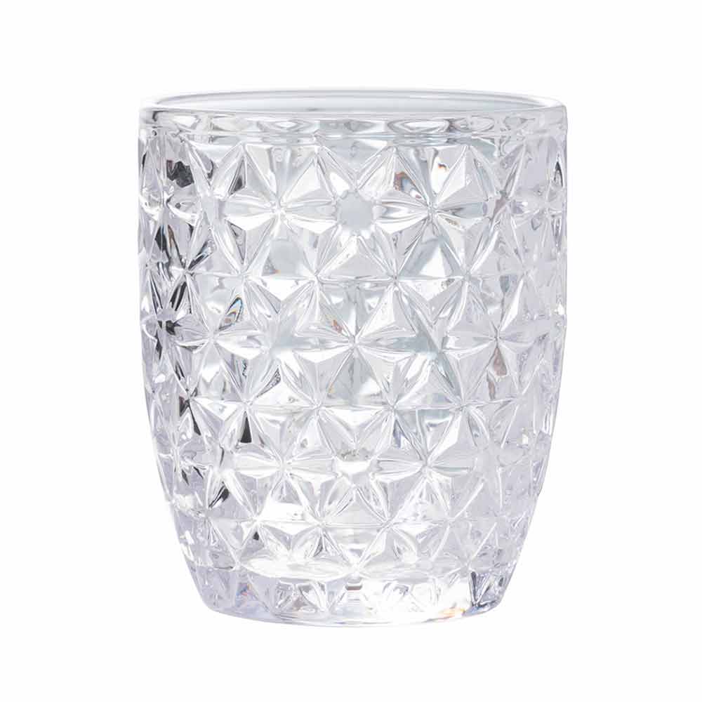 Sada sklenic na vodu z průhledného skla zdobená různými geometriemi, 12 kusů.