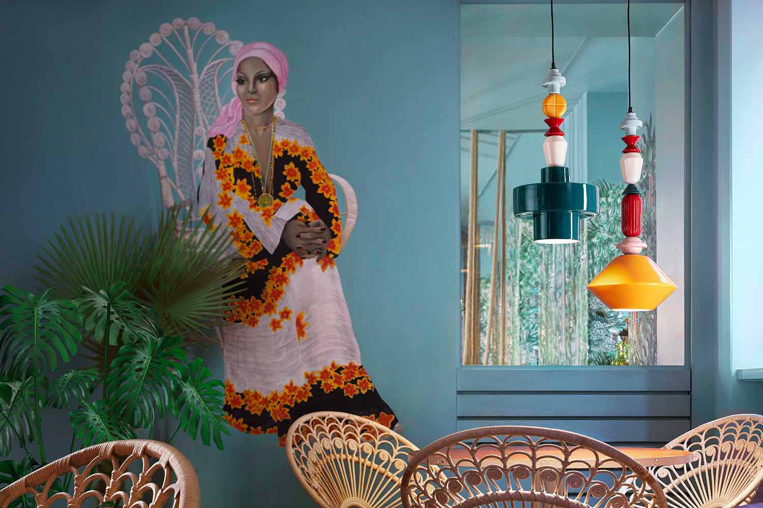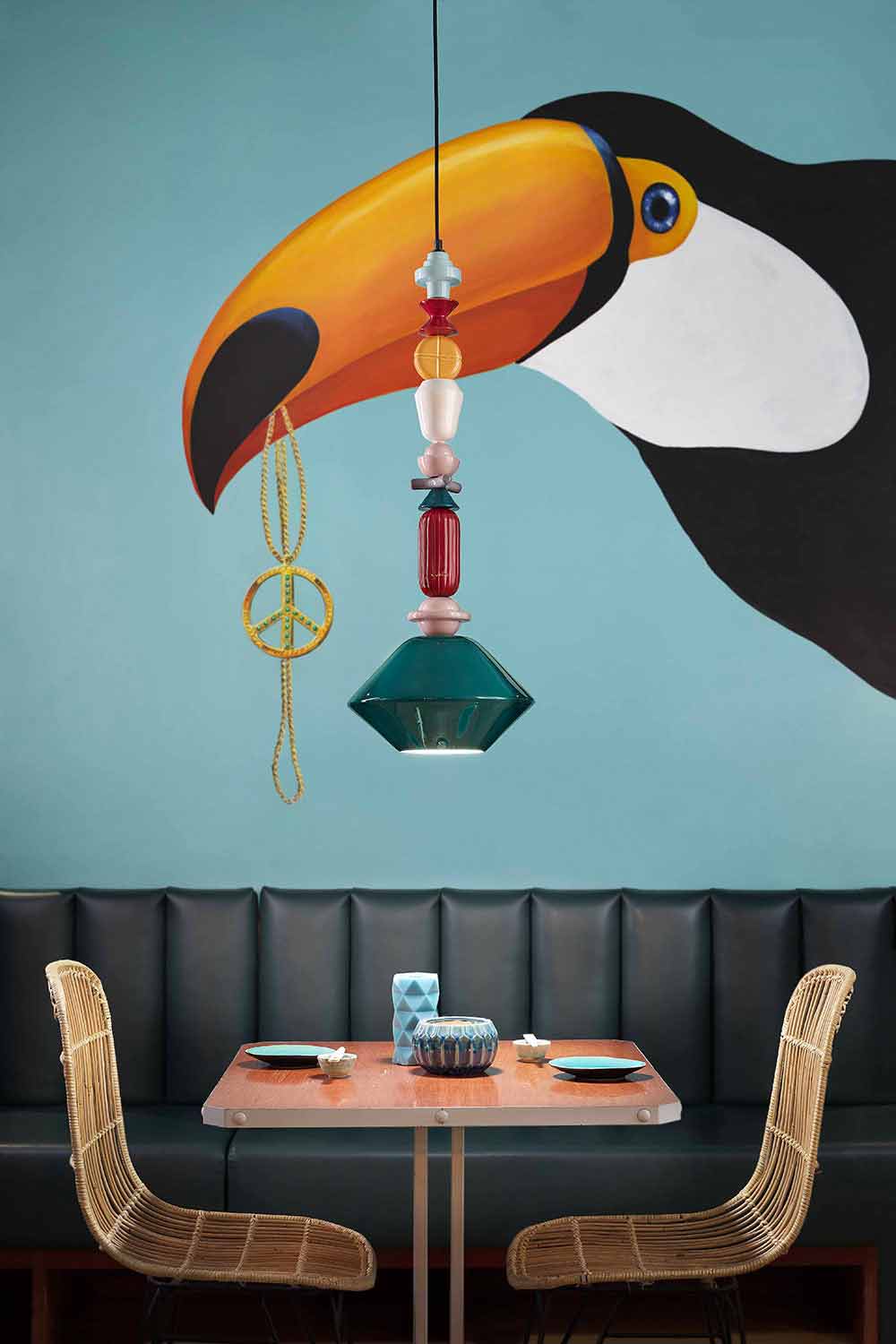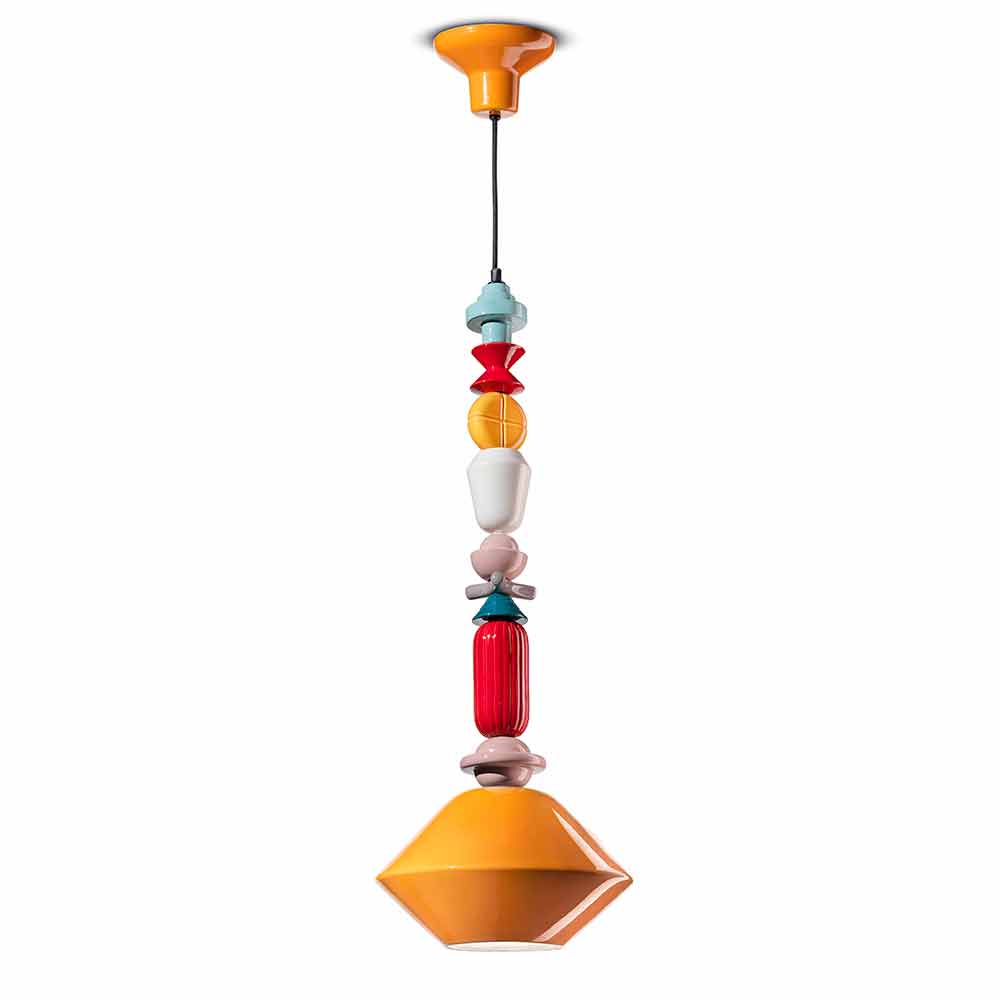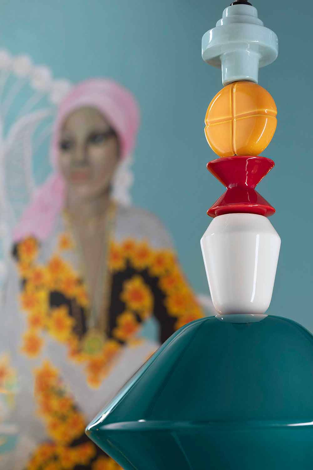 Lariat je unikátní a speciální ztvárnění vícebarevných keramických prvků, které na sebe vertikálně navazují až k centrálnímu difuzoru.
