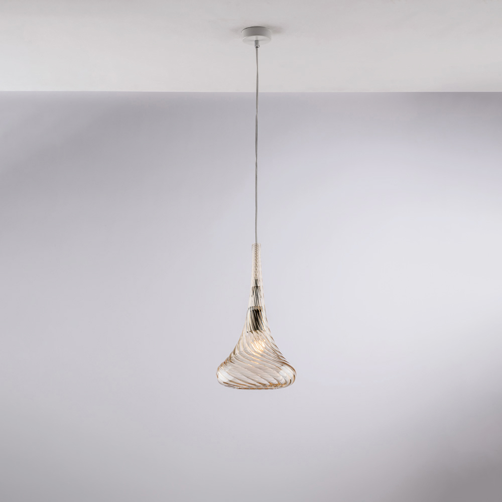 Toto závěsné svítidlo, které je k dispozici v průhledné , jantarové nebo šedé povrchové úpravě, se snadno přizpůsobí různým interiérovým stylům: v průhledné verzi je jasné a minimalistické, v jantarové hřejivé a obklopující, v šedé decentní a elegantní. Je ideální do kuchyní , na kuchyňské ostrůvky , k jídelním stolům , do chodeb , čtenářských koutků a designových prostor , ať už se používá samostatně nebo v kompozicích.