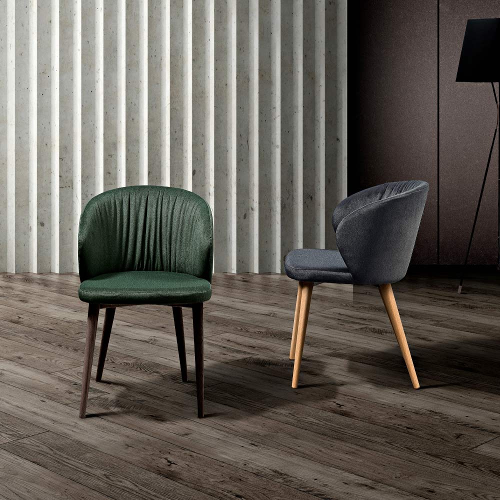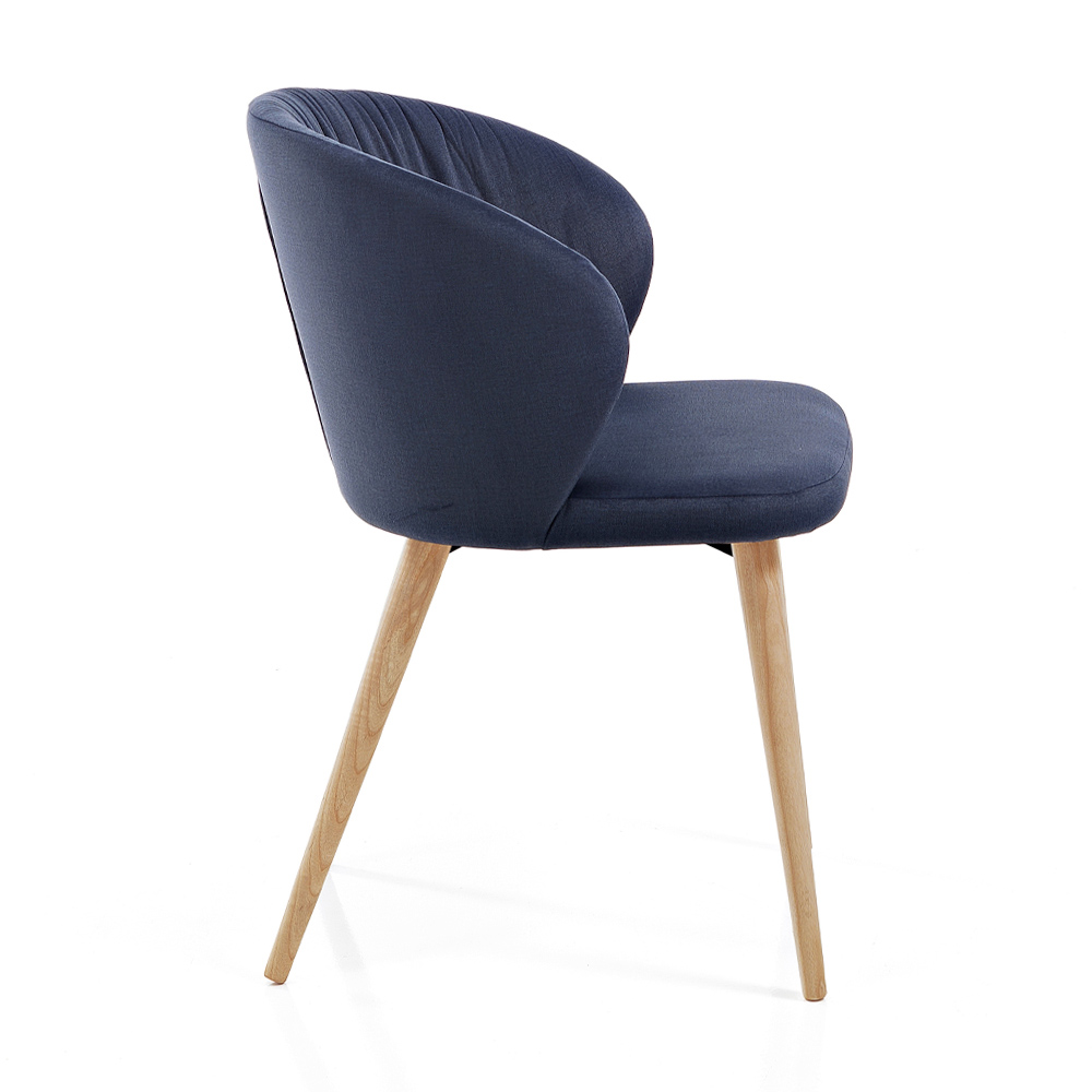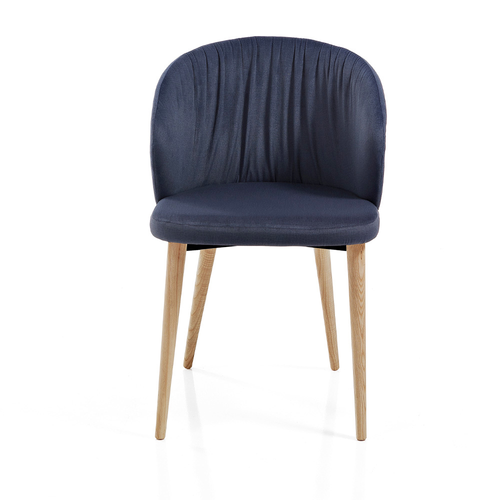 Vanová židle potažená barevnou látkou a kónickými jasanovými nohami moderního designu italské výroby.