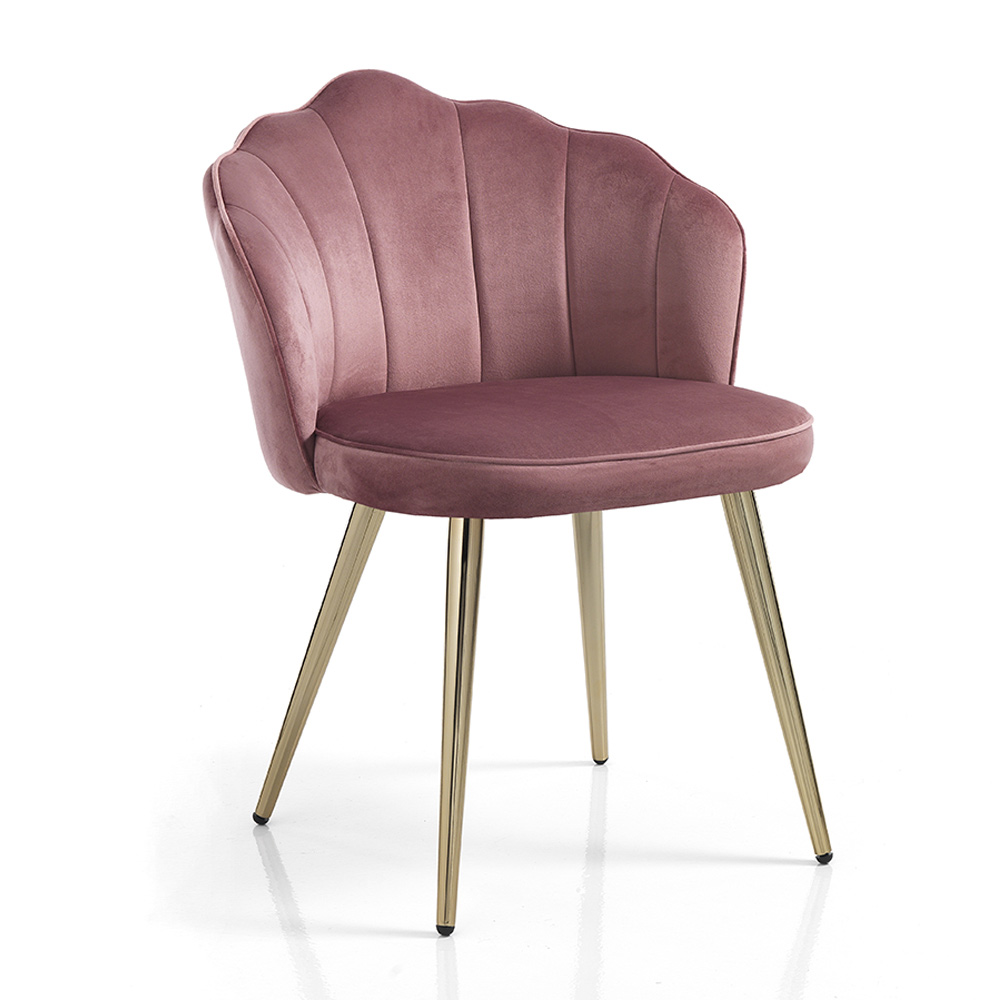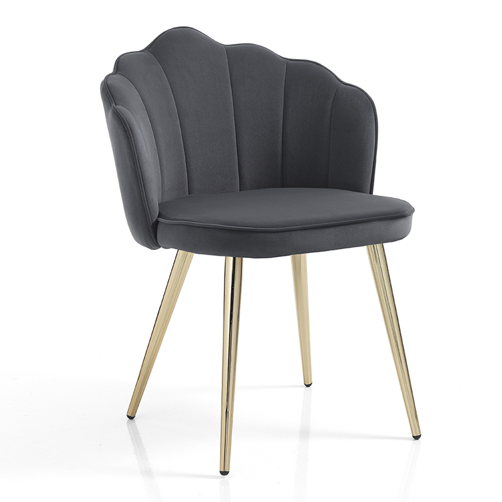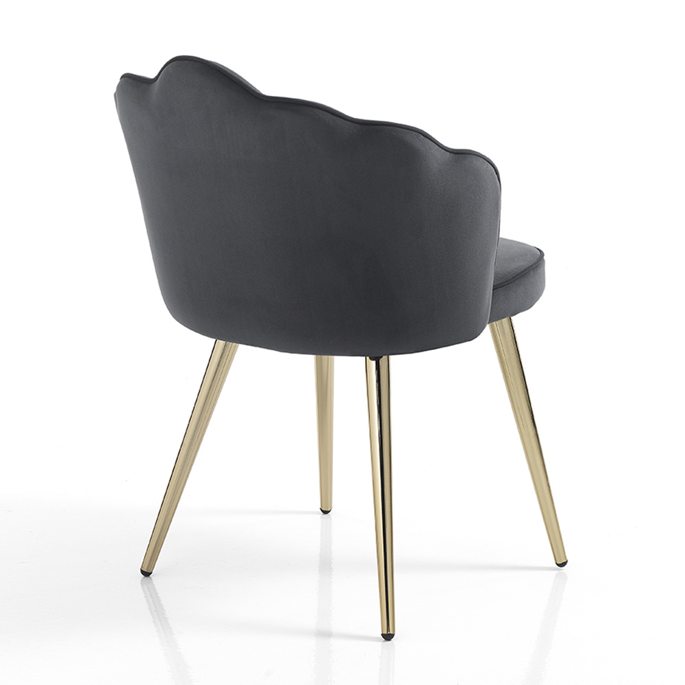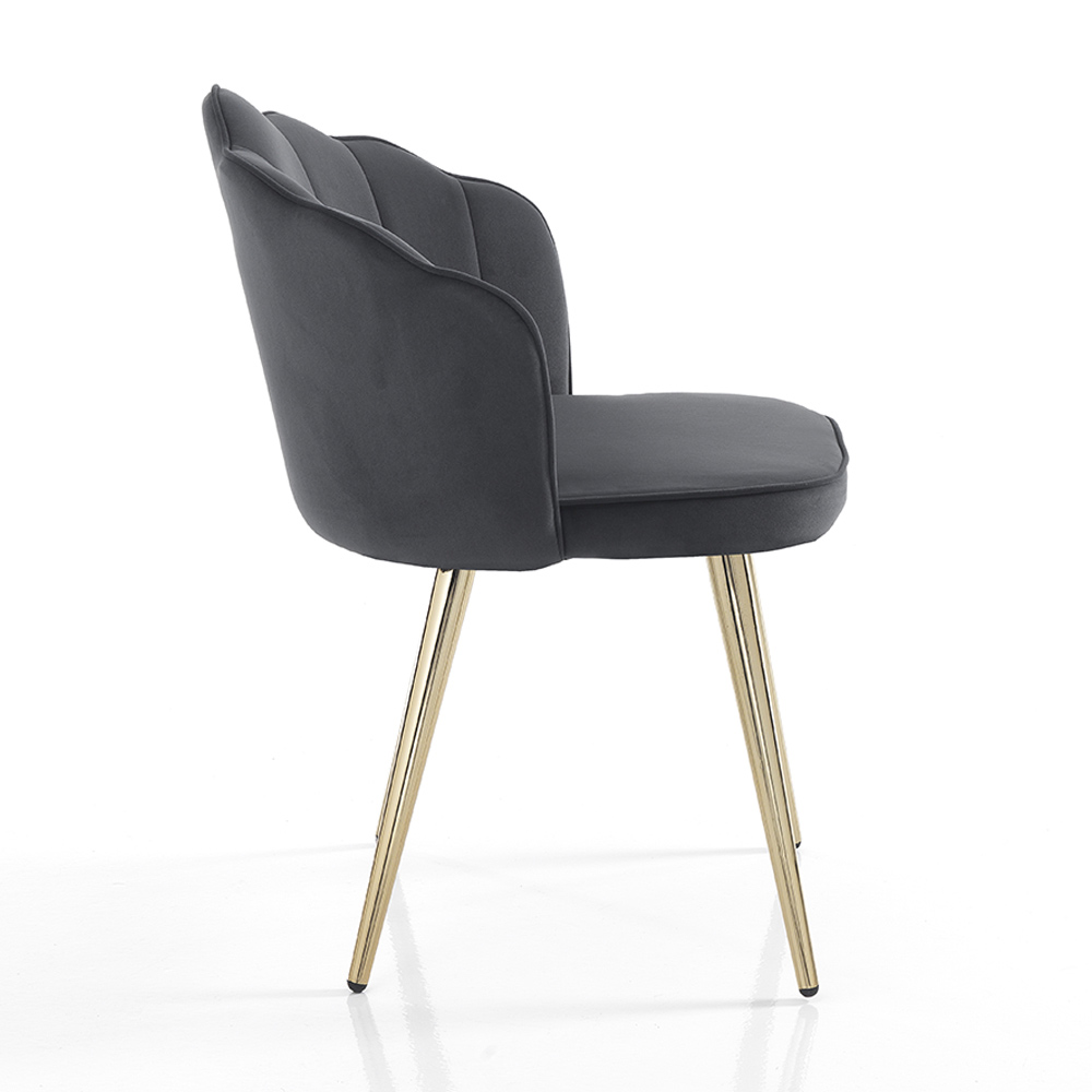 Jídelní židle z látky se sametovým efektem a lesklého zlatého kovu, 4 kusy.