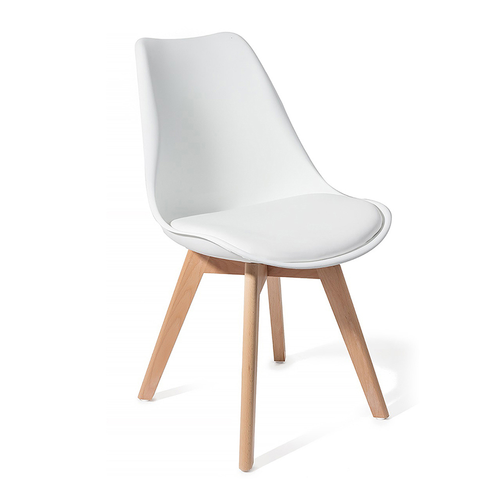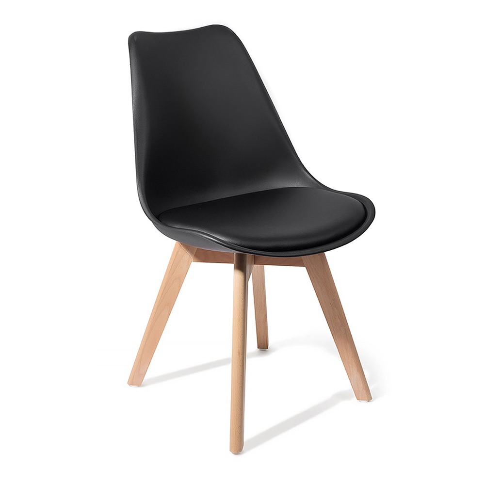 Jídelní židle ze syntetické kůže, polypropylenu a masivního dřeva, 4 kusy.