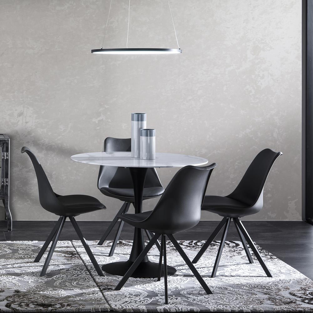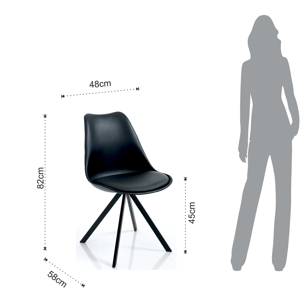 Jídelní židle ze syntetické kůže a polypropylenu s ocelovými nohami, 4 kusy.