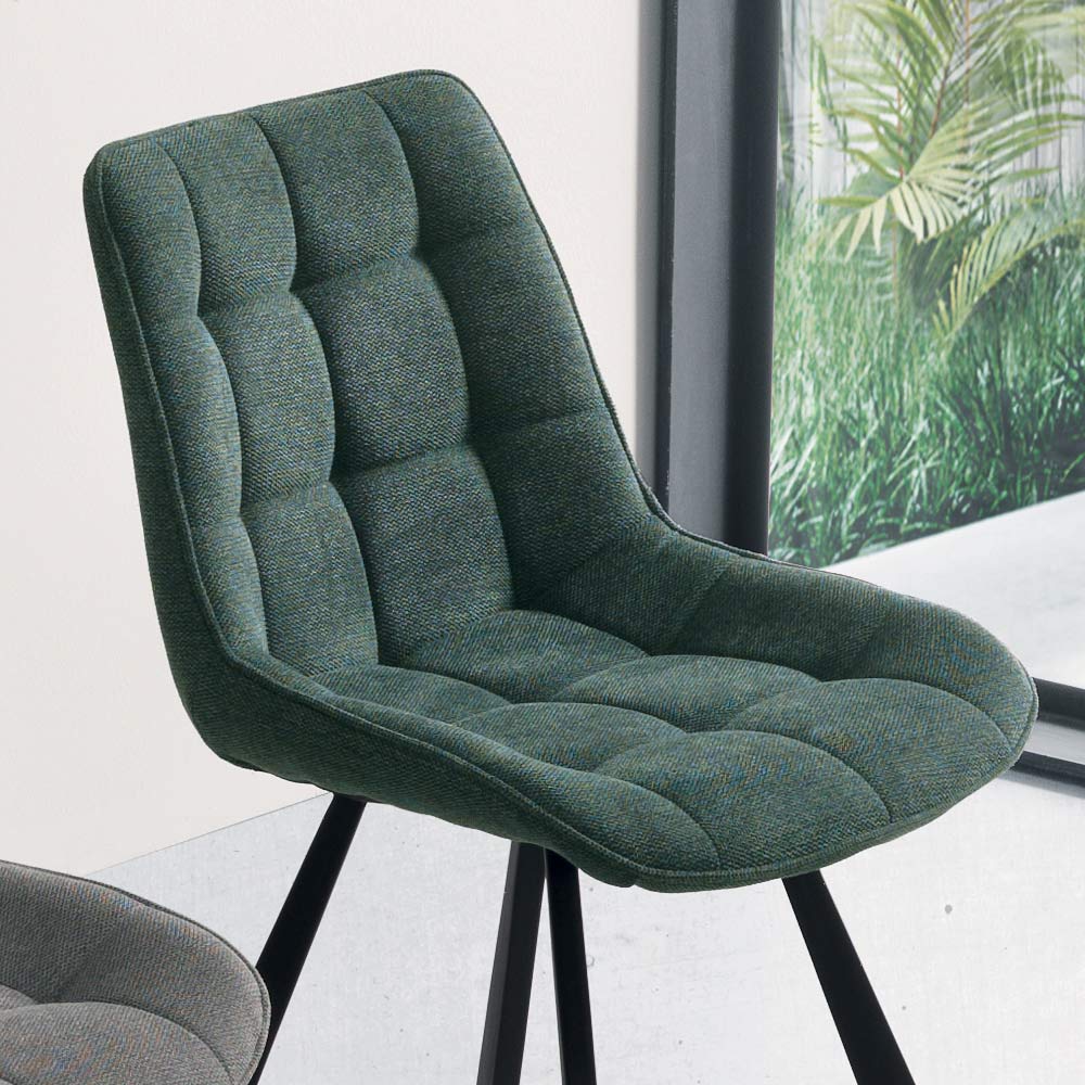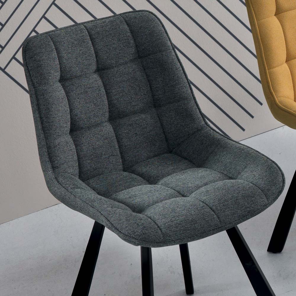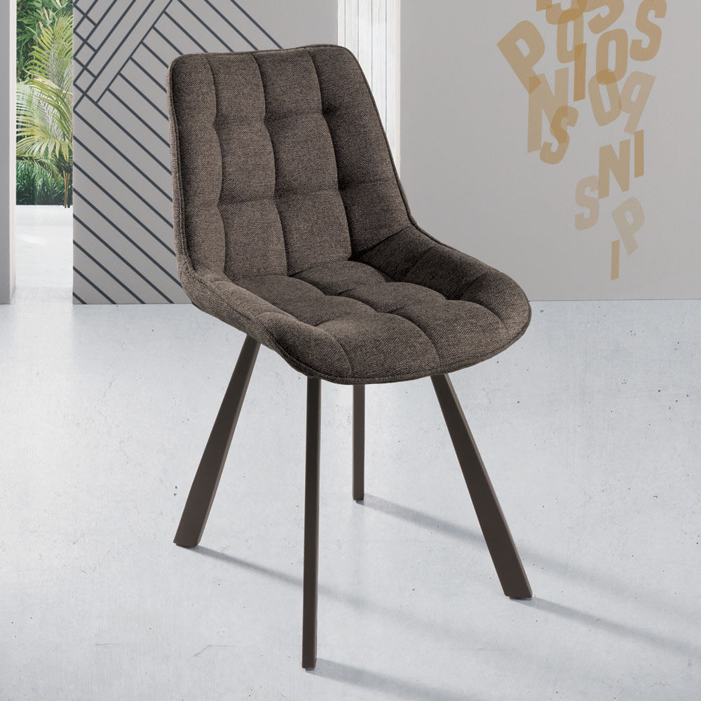 Čalouněná jídelní židle a 4dílná kovová konstrukce.