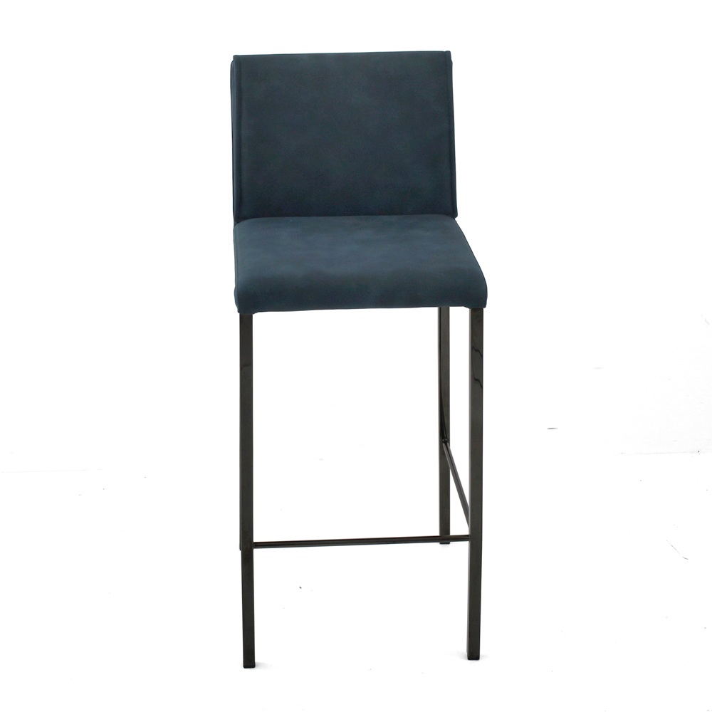 rebelským koženkovým sedákem v benzínové barvě. Taburetka s nadčasovým kouzlem kombinuje