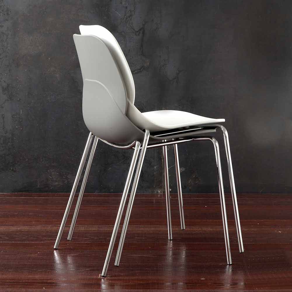 Každá židle Licata je tvořen kovovou konstrukcí v provedení chrom a tělo vyrobené z polypropylenu, k dispozici ve dvou různých barvách: bílá nebo šedá RAL 7037 křemene.