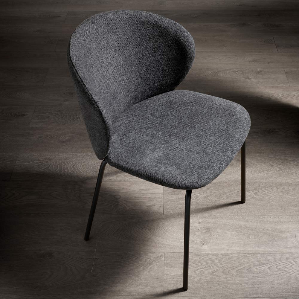 Štíhlé kovové nohy dodávají židli jemnou eleganci a solidní stabilitu, kontrast materiálů, který čerpá jak z průmyslové moderny, tak ze skandinávské přirozenosti. Je to židle, která nabízí nádech sofistikovanosti bez námahy do jakéhokoli prostředí.
