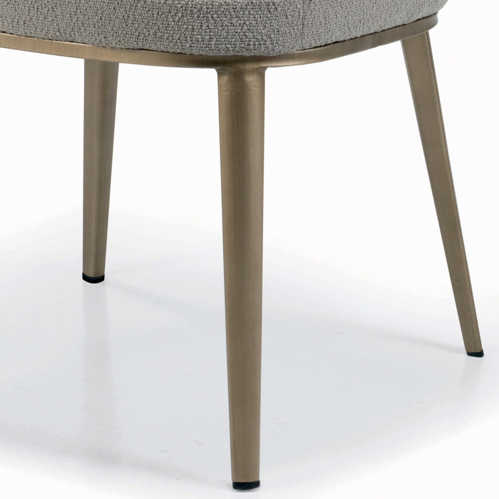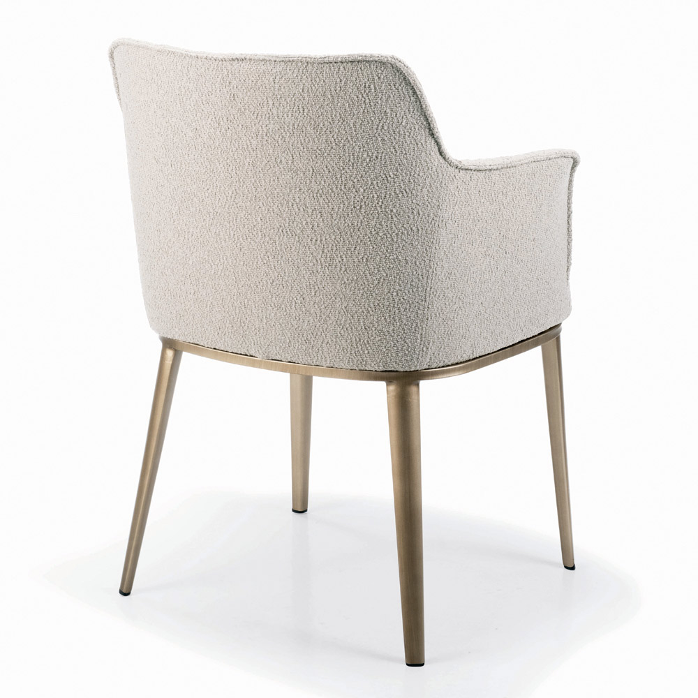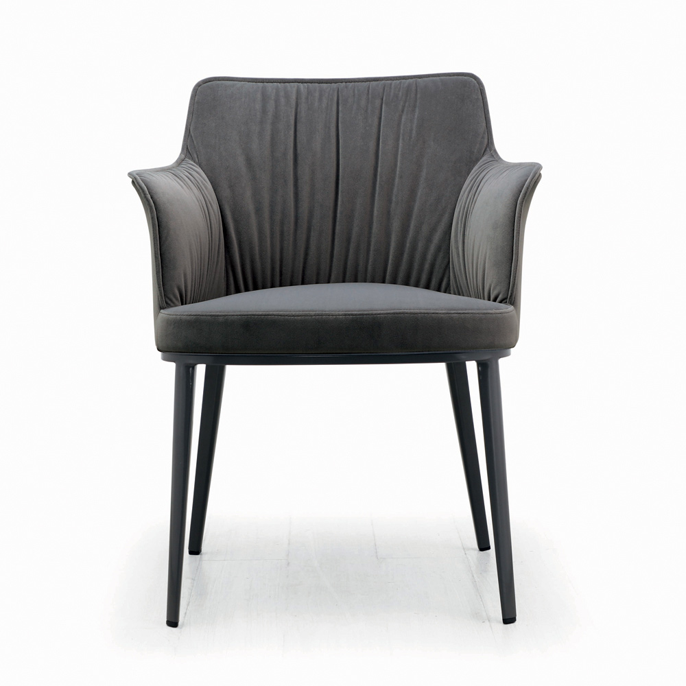 Židle do obývacího pokoje vyrobená s ocelovým sedákem a opěradlem zcela potaženým látkou nebo sametem a lakovanými ocelovými nohami. Esencialita a minimalismus jsou zvláštními vlastnostmi tohoto bytového doplňku v moderním stylu navrženém pro ty, kteří milují jednoduché zařízení, ale zároveň se silným vizuálním dopadem . Estetická lehkost vyznačující se jeho tvary je jeho největší předností, umožňuje jej zasadit do jakéhokoli kontextu a vždy působit jedinečně a originálně .