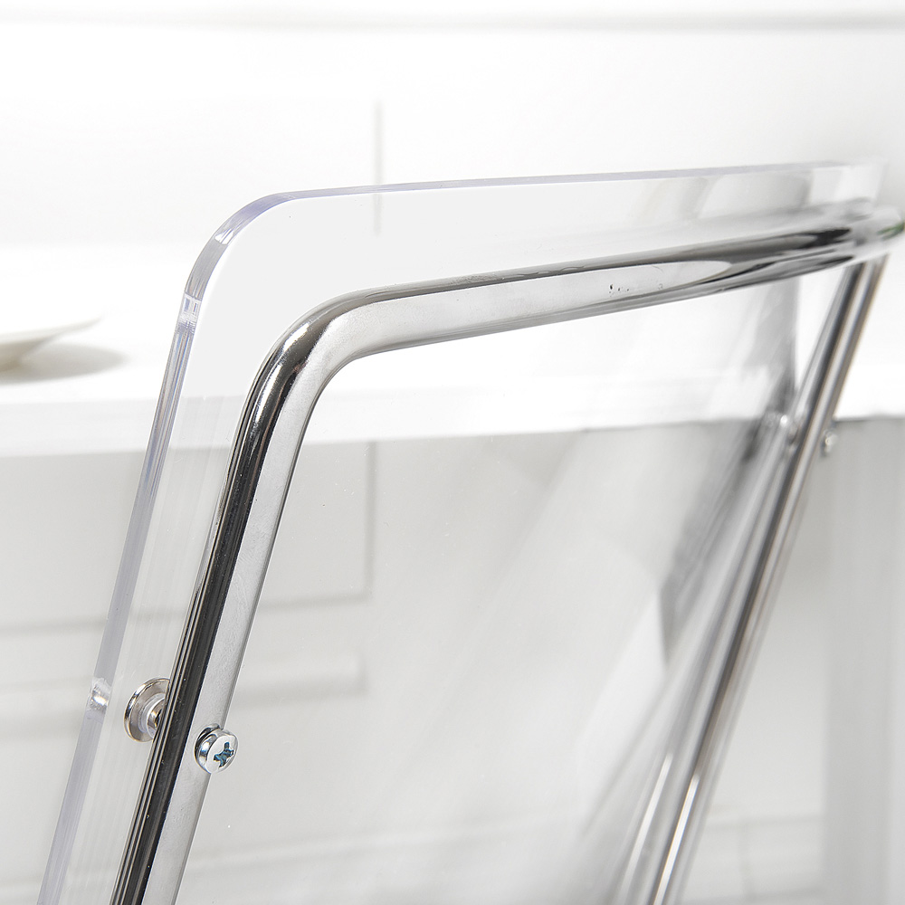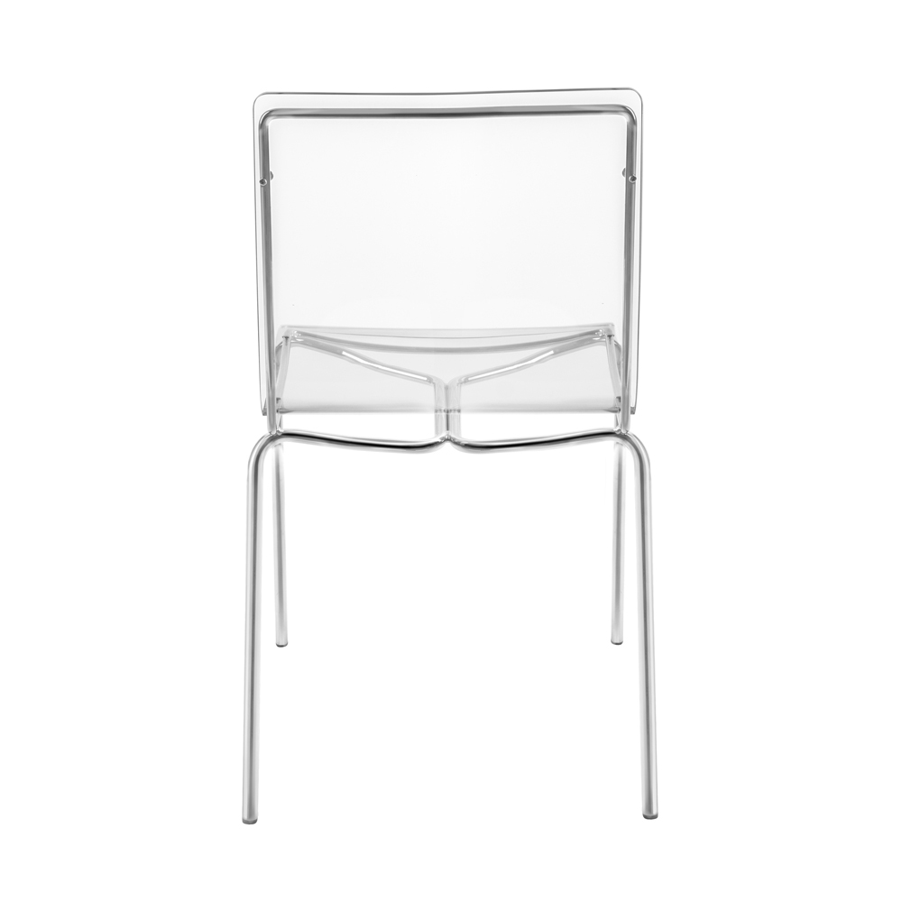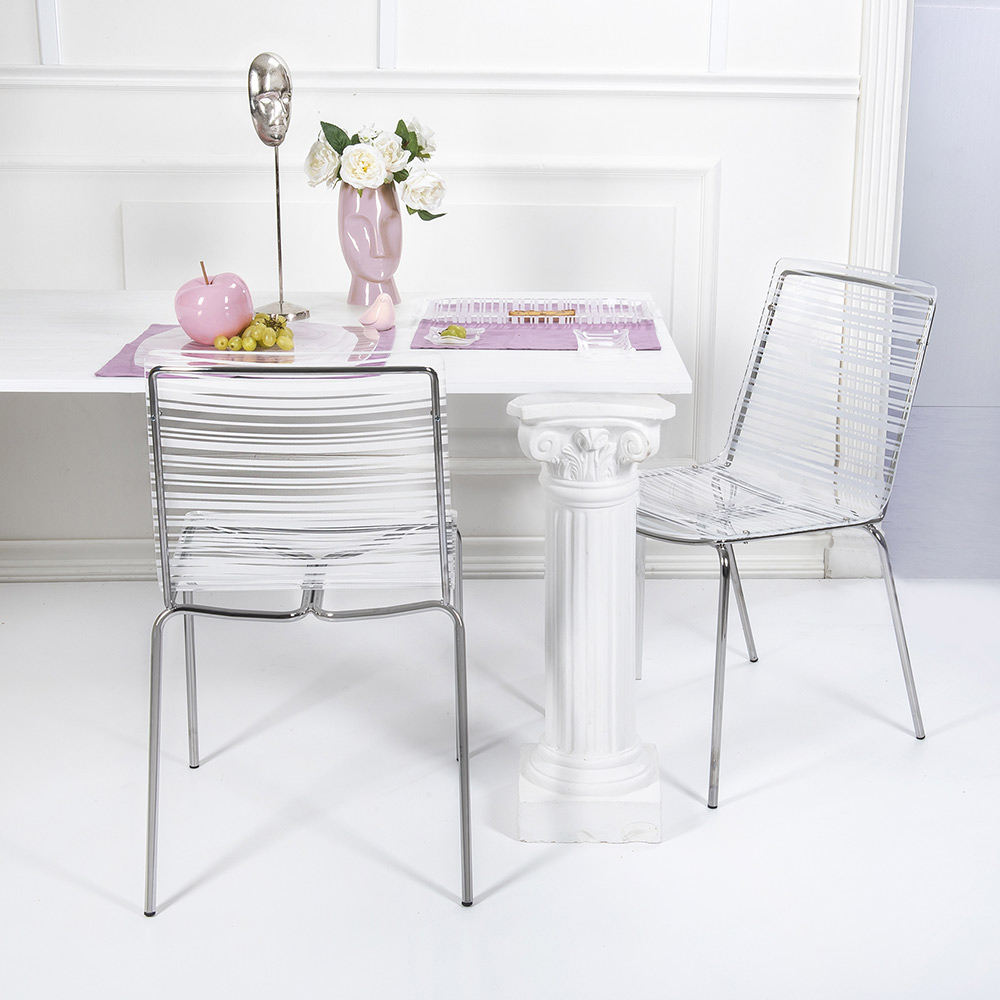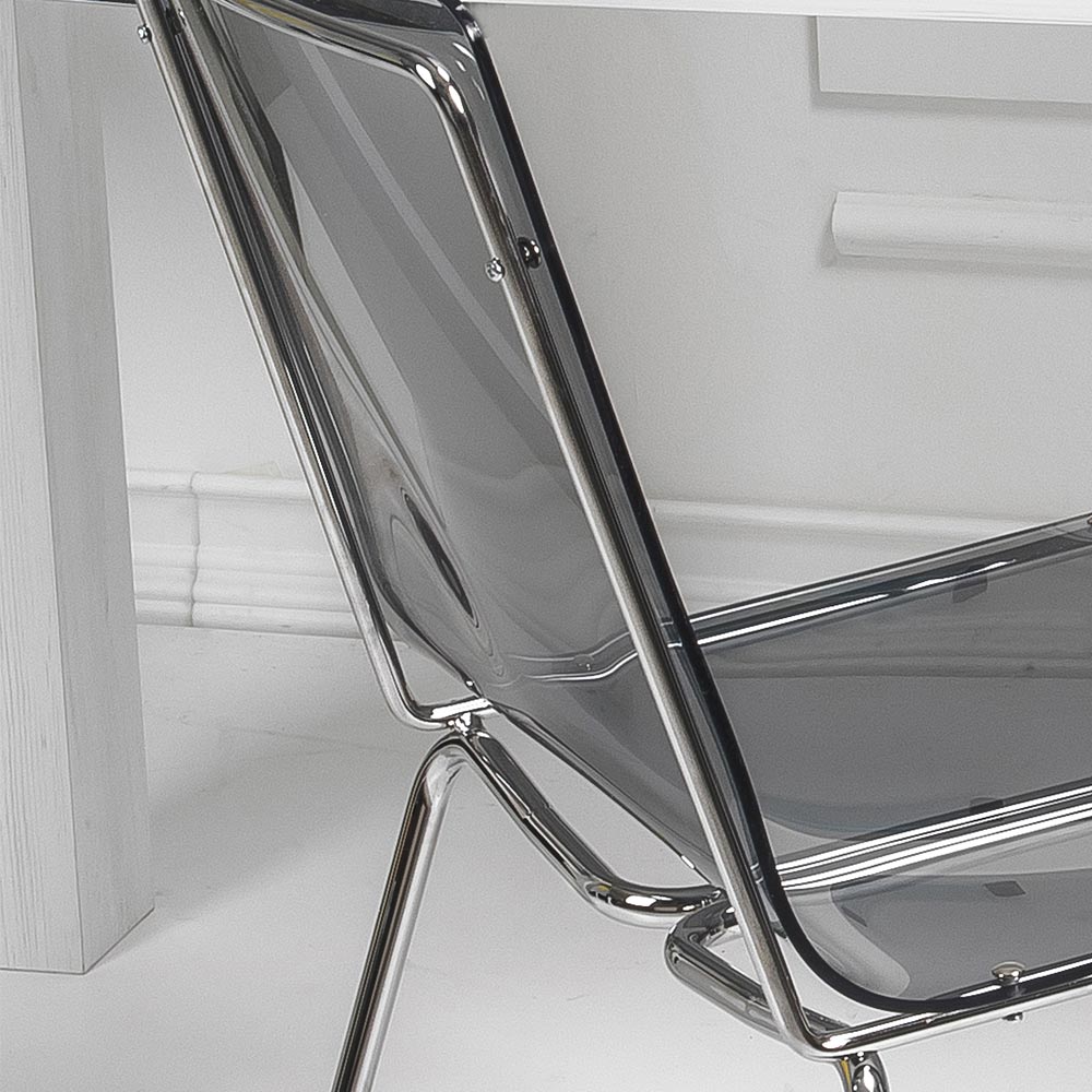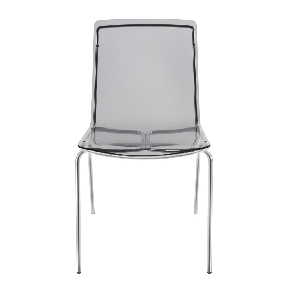 Jídelní židle kompletně vyrobená v Itálii s plexiskelnou skořepinou a chromovanými železnými nohami, díky kterým je také snadno stohovatelná. Tento kus nábytku, který se vyznačuje jednoduchým a čistým designem , je všestranný a současný také díky použitým inovativním materiálům, které zvýrazňují jeho geometrickou eleganci .