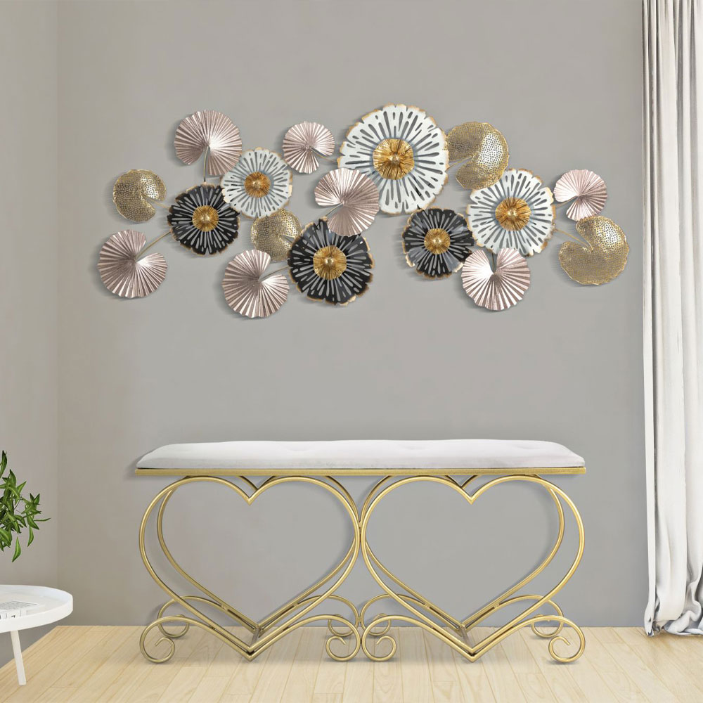 Moderní železná lavice se zlatým povrchem se sedákem polstrovaným houbou a