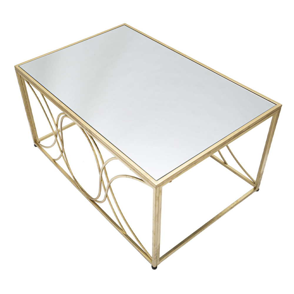 Moderní konferenční stolek ze železa se zlatým povrchem se zrcadlovou deskou