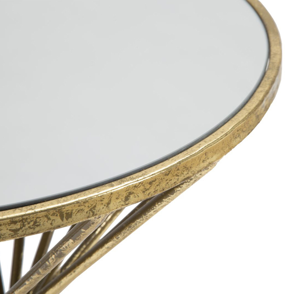 Konferenční stolek ze zlaceného železa s kulatou zrcadlovou deskou.