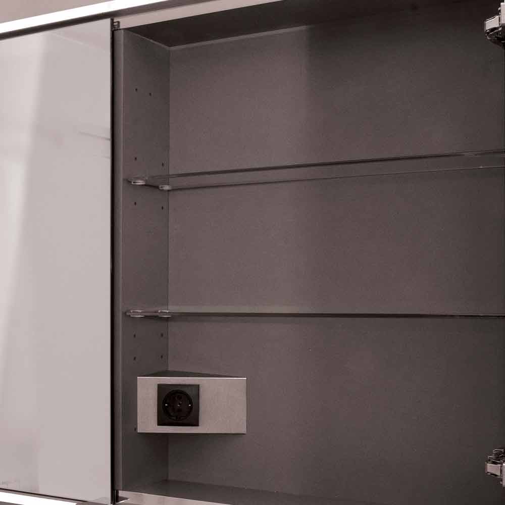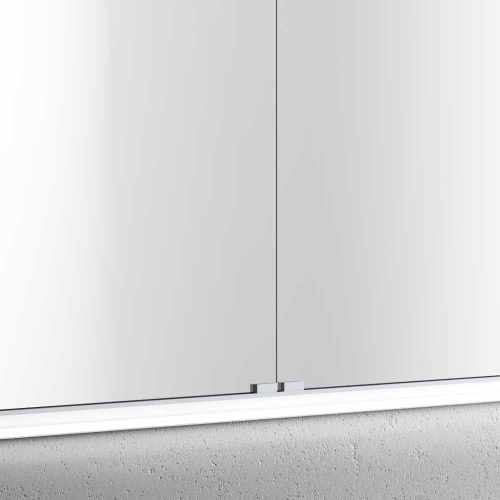 Skříň se 2 zrcadlovými dveřmi s čistými liniemi, kde osvětlení stává designovým prvkem. Struktura FENIX, polymerní materiál s nano technologických vod, vodu odpuzující, anti-otisk prstu a měkký na dotek. Dodáván se zásuvkou a vypínačem.