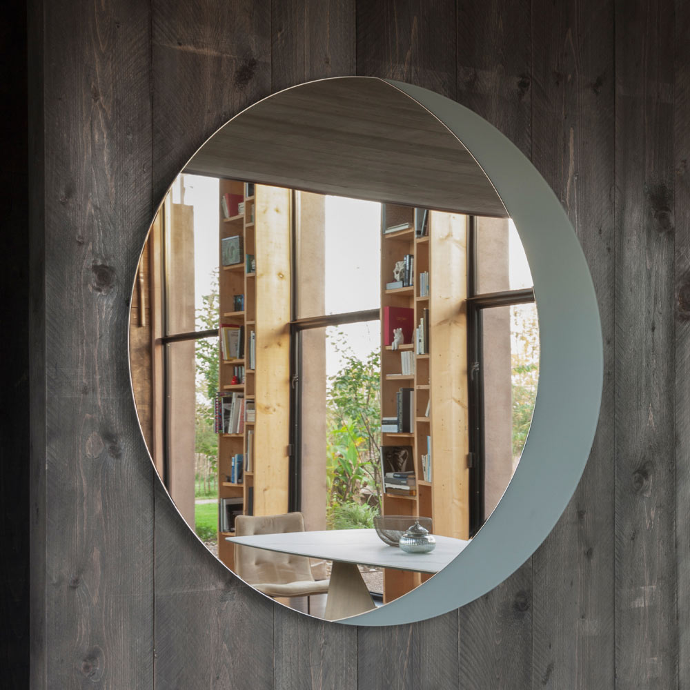 Kulaté zrcadlo s jednobarevným dnem z lakovaného skla Made in Italy