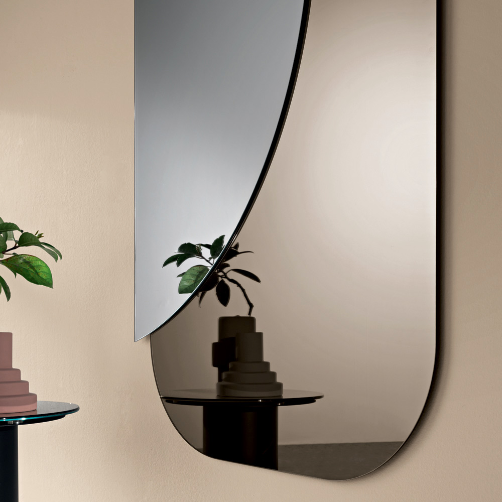 Toto zrcadlo, které je k dispozici v rafinovaných barevných kombinacích, dodává stěně sofistikovaný grafický nádech a stává se perfektním dekorativním prvkem pro moderní a rafinované prostory.